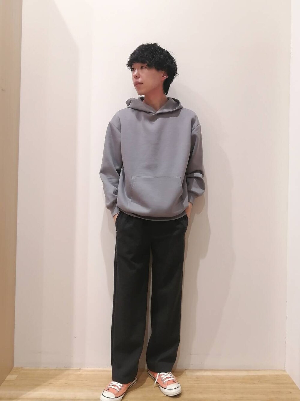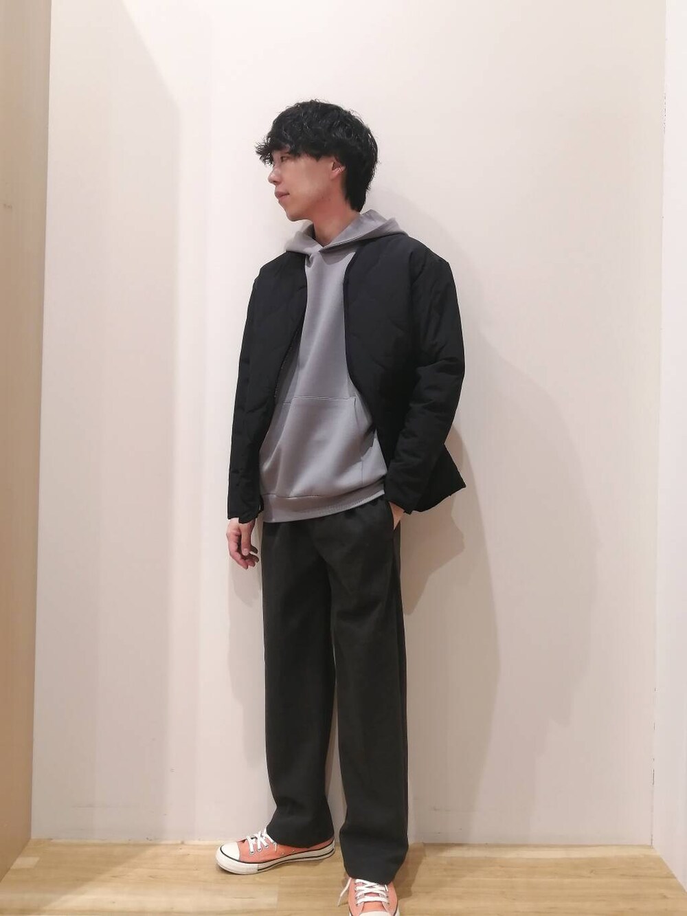 アウター、スウェット、パンツすべてMサイズを着用しております。