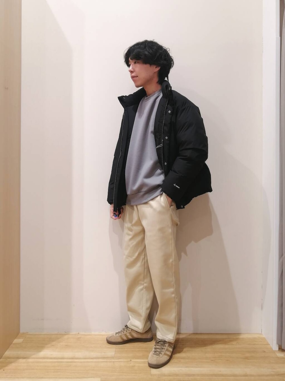 アウター、パンツはMサイズ、スウェットはLサイズを着用しております。