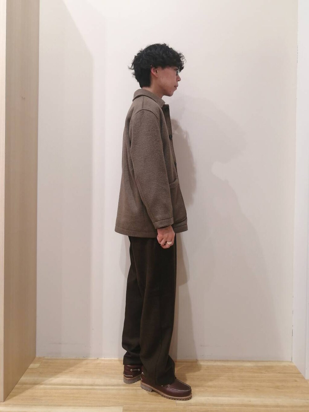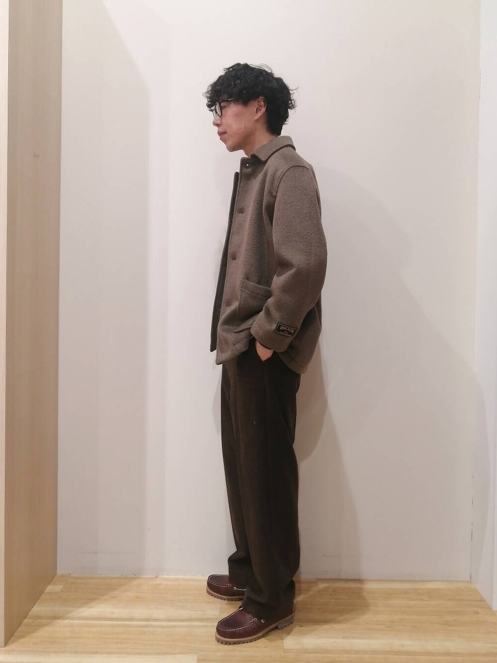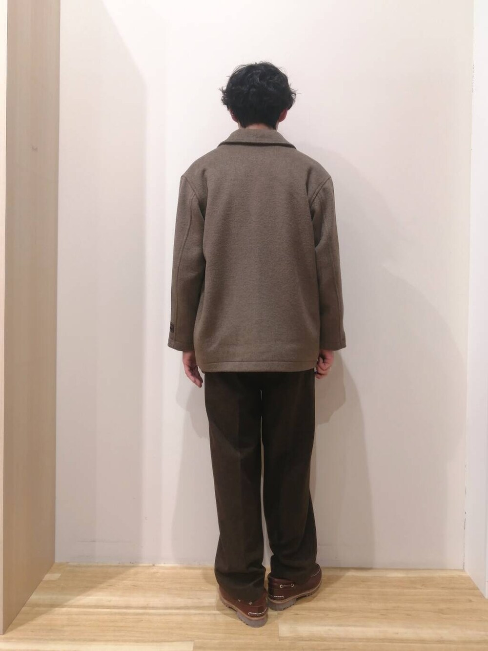 アウター、ニット、パンツすべてMサイズを着用しております。