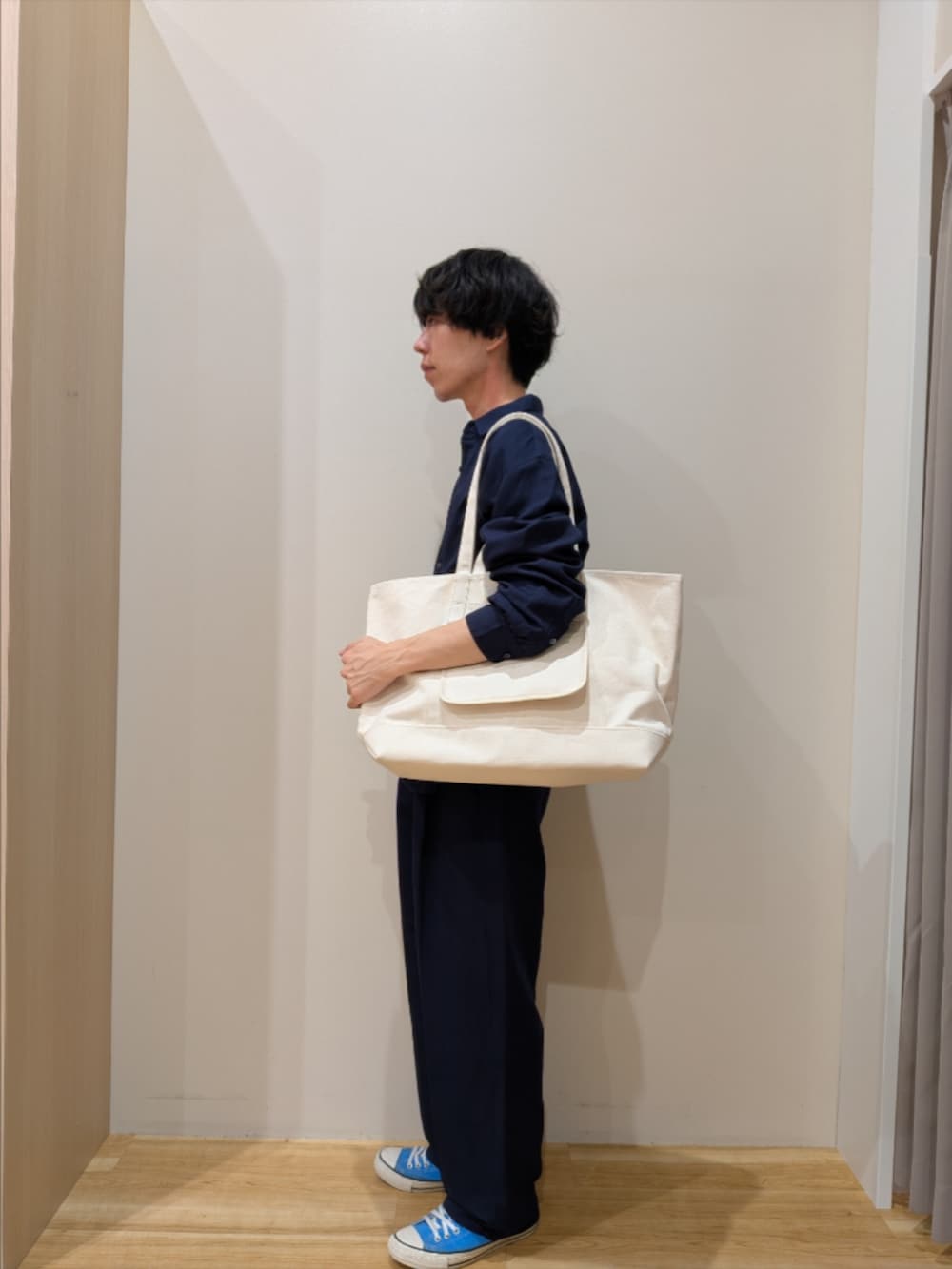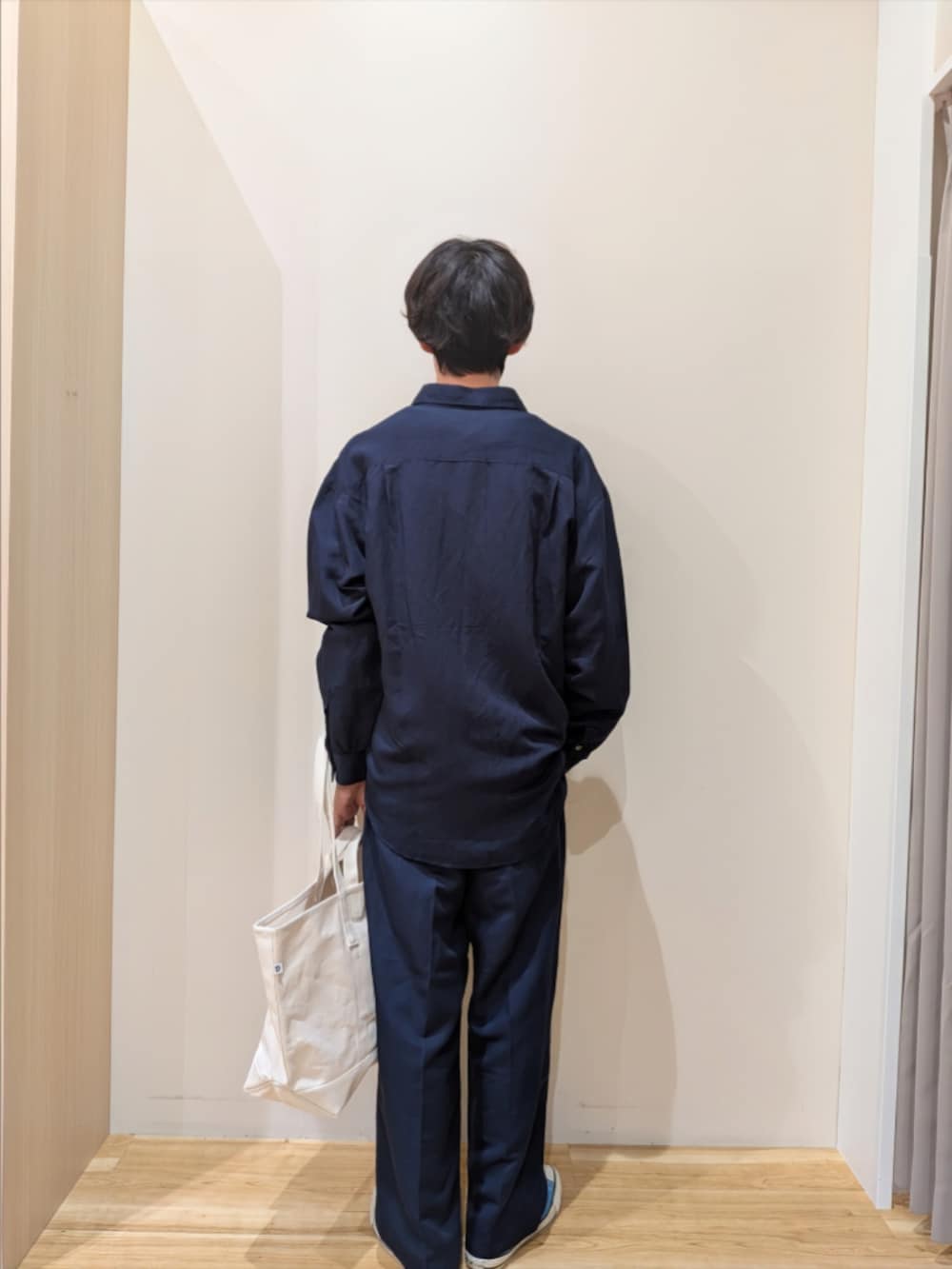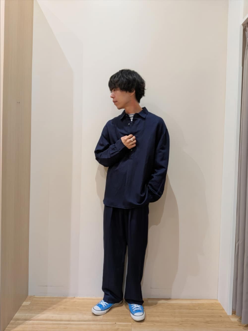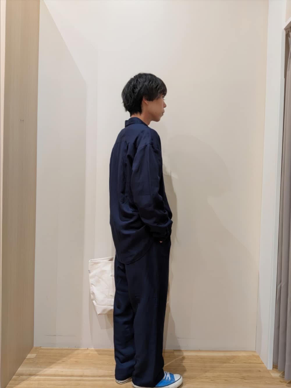 シャツとカットソーはMサイズ、パンツはLサイズを着用しております。