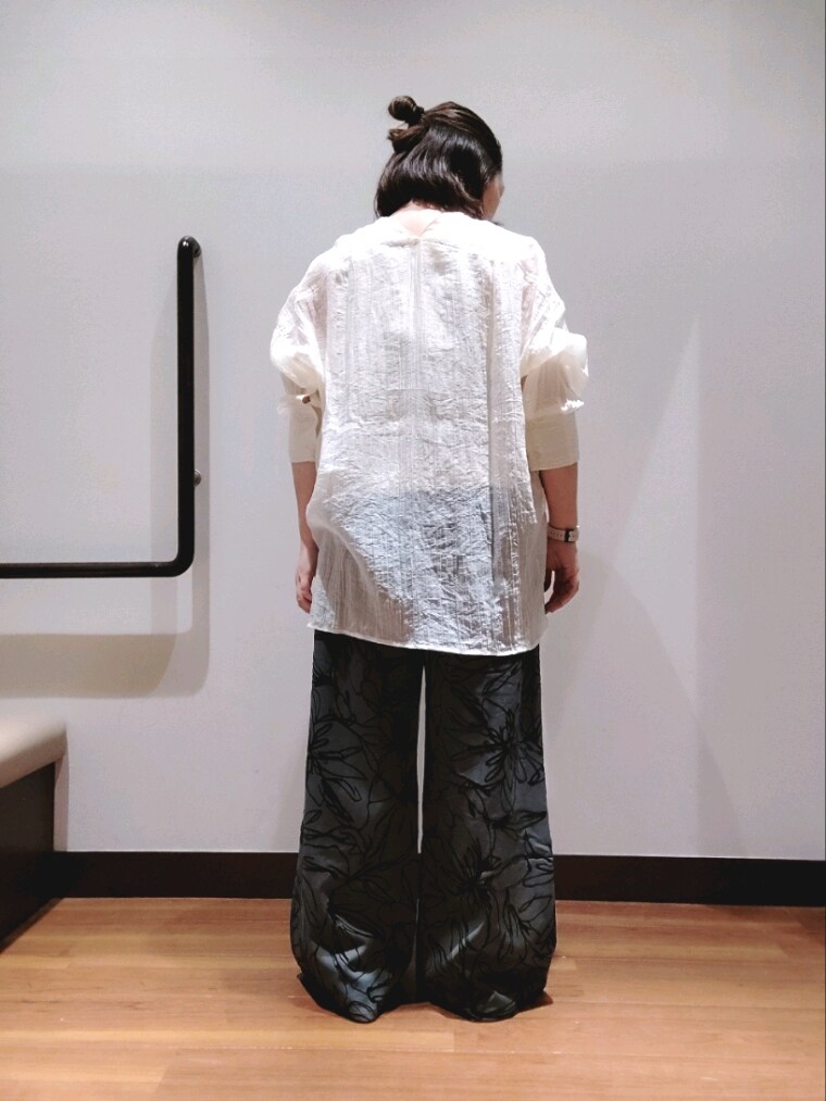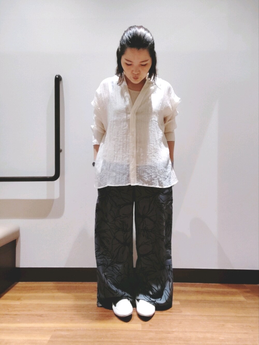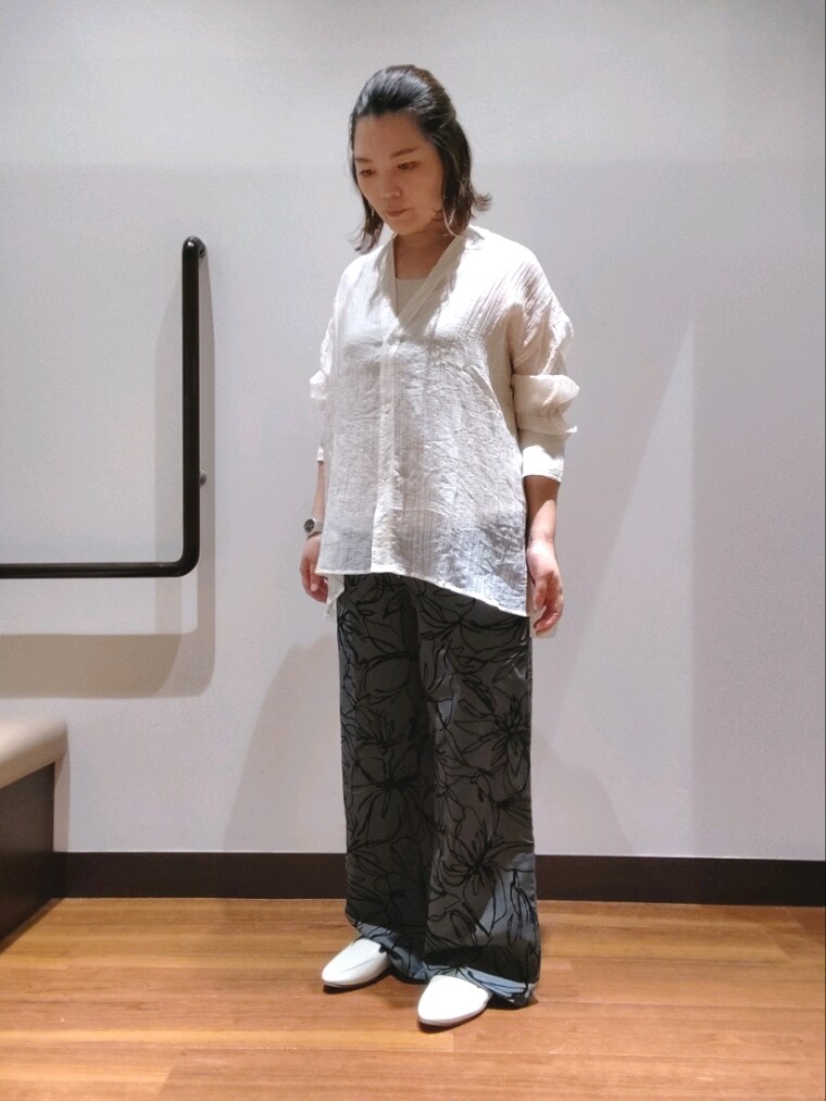 トップスはTシャツやブラウスなど軽いものだとバランスも良いと思います^^