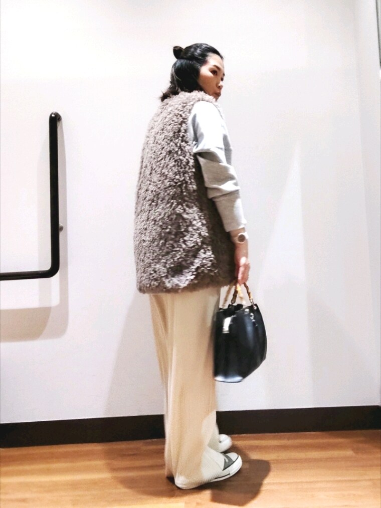 柔らかく着るとスッキリとしたシルエットになるので、インナーは厚みのあるスウェットなども着れます!!