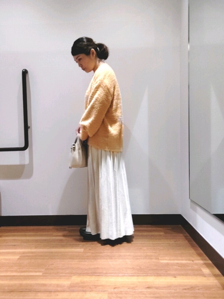 オレンジ色が可愛いシャギーニットです。