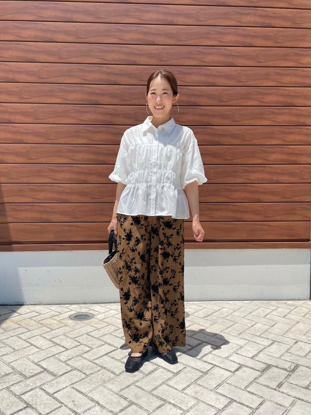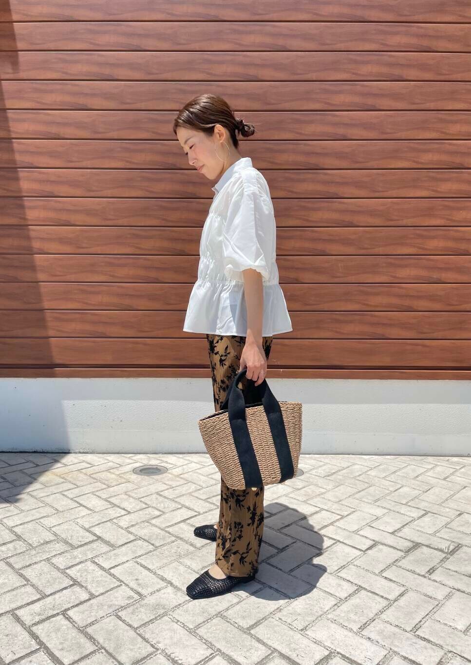 シャーリングデザインがとても可愛いブラウスです。立体感があるので横から見ても形がキレイなのが嬉しいポイントです。