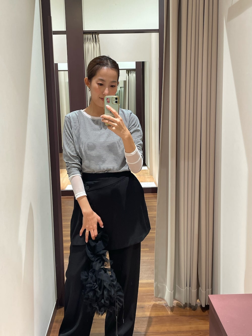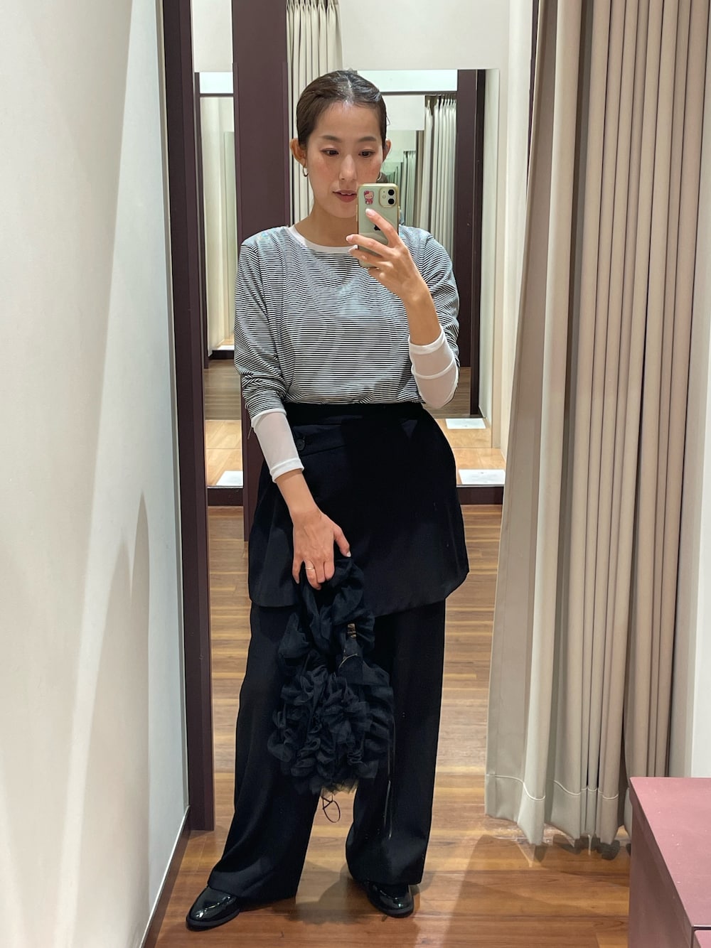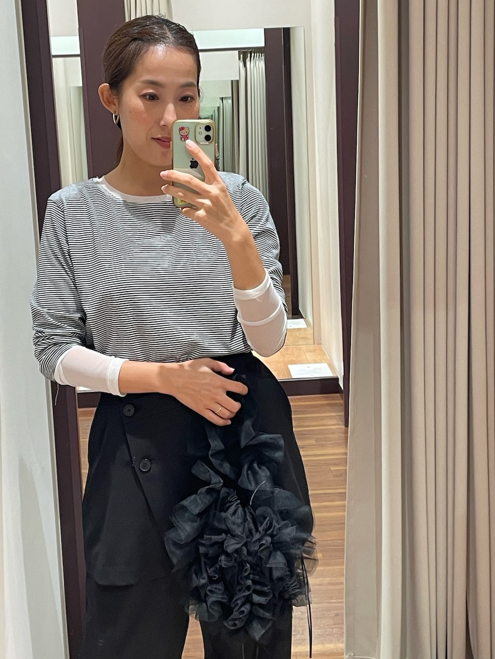 トップスのカットソーは袖部分がチュールになっており重ね着したようなデザインになっていてとても可愛いくてオススメです‼︎