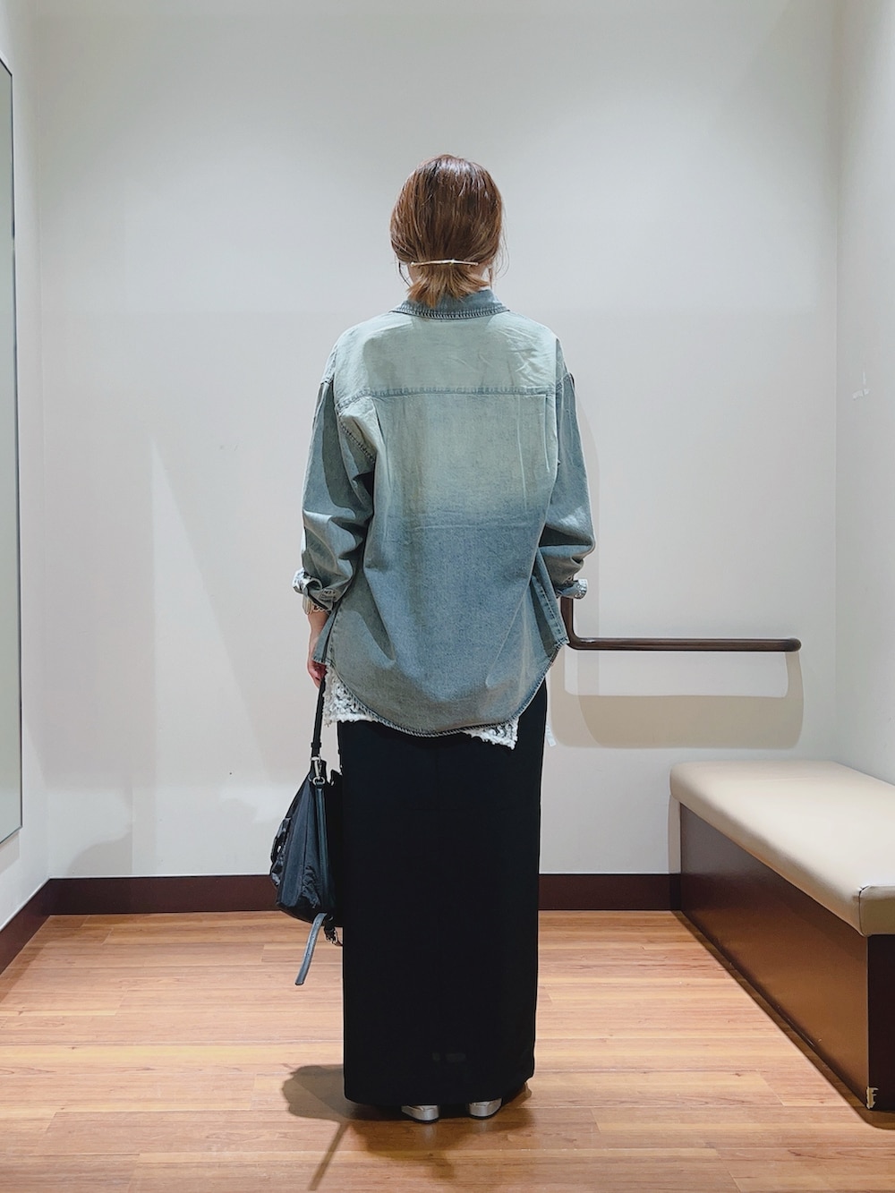 メンズのデニムシャツのMサイズを着ています👔