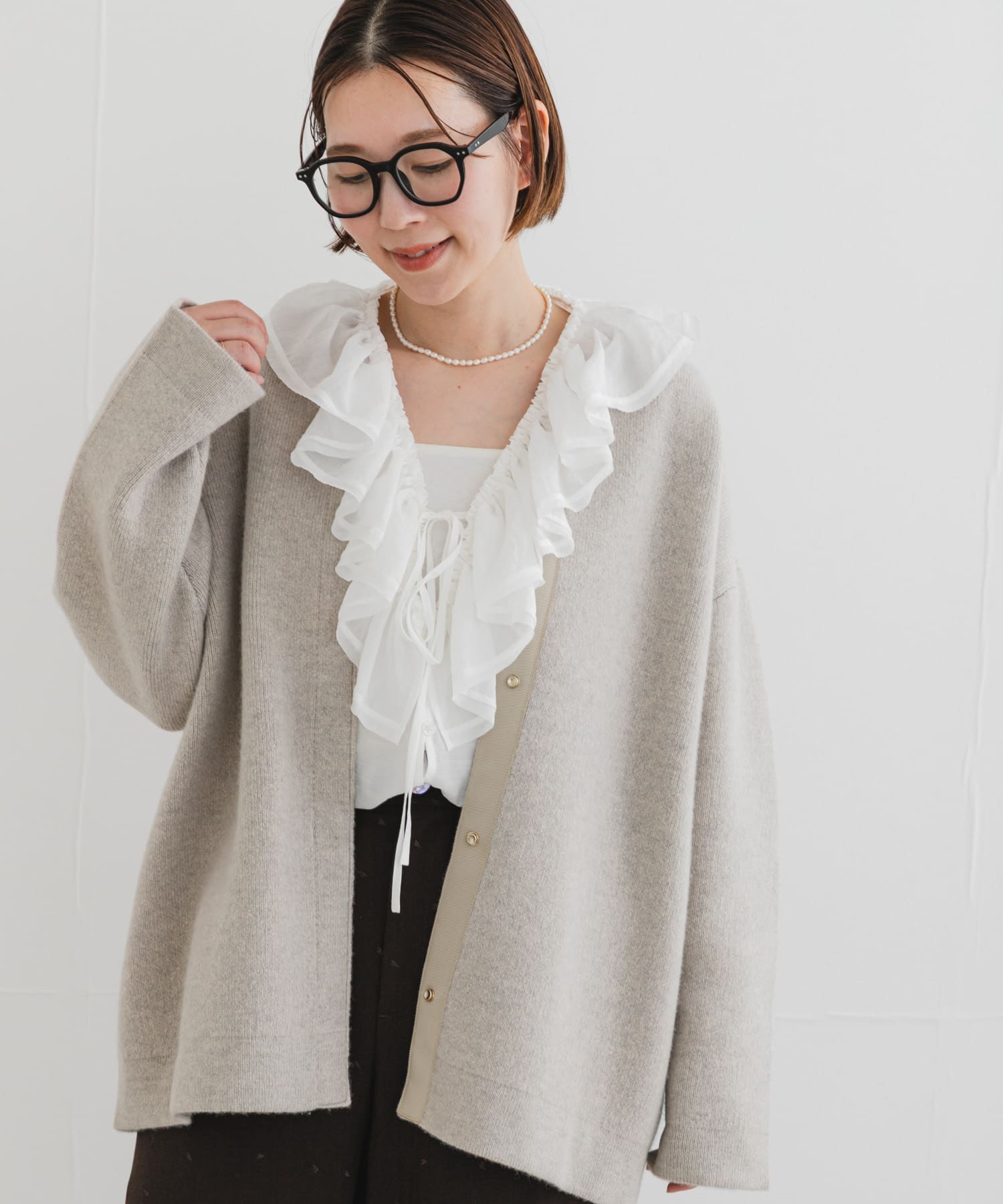 ROSSOF by ROSSO フリルカラーシアーブラウス- 着用カラー: