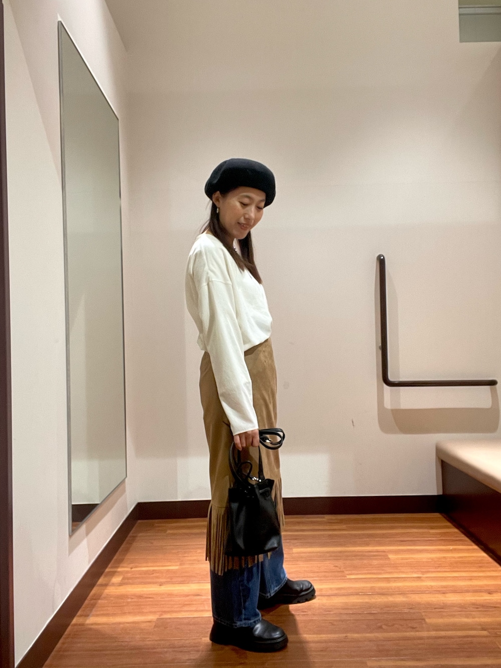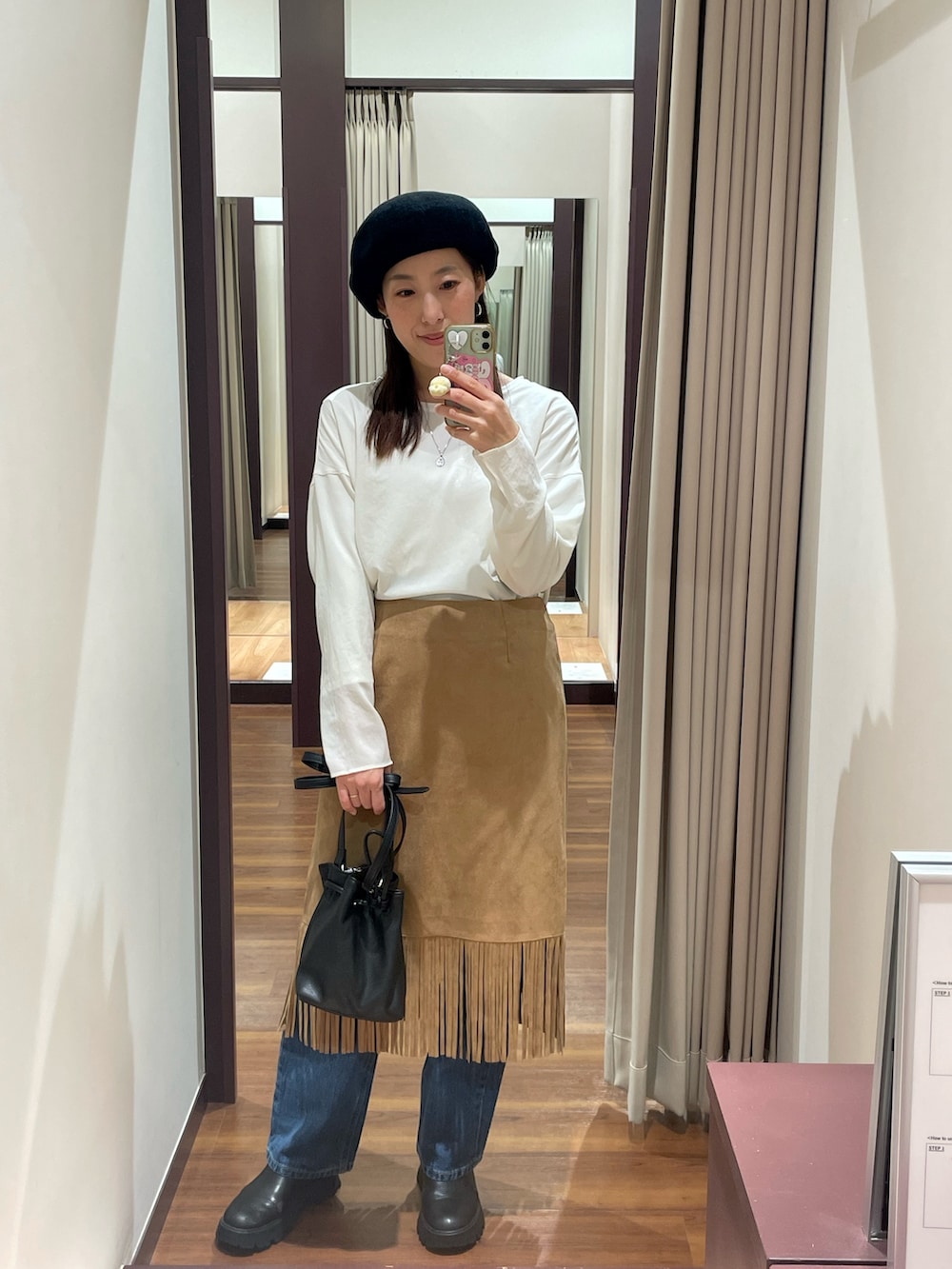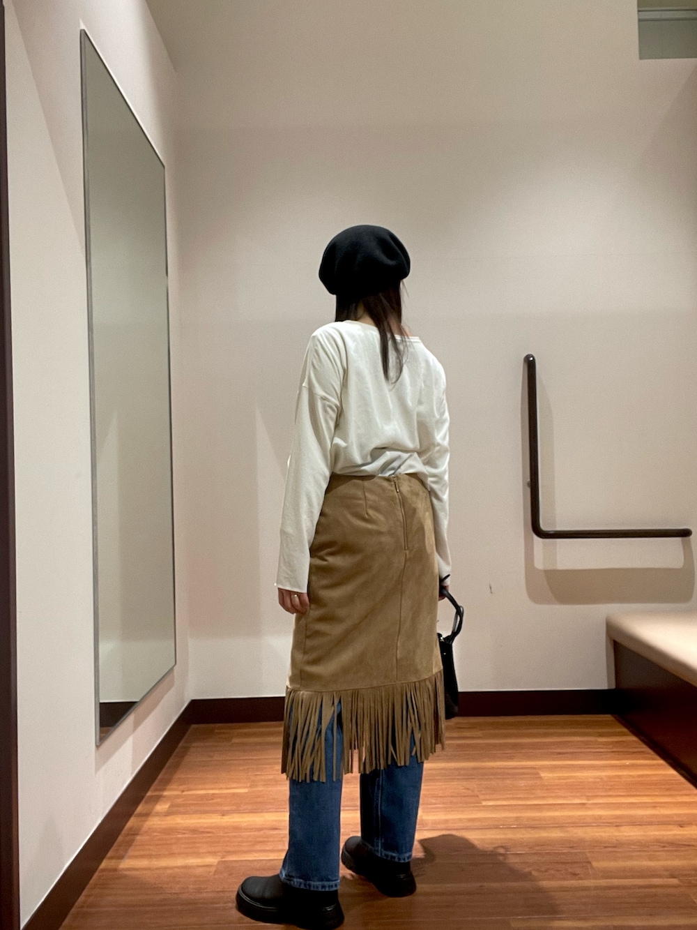 スエードスカート×デニムの今期らしいレイヤードスタイルです‼︎