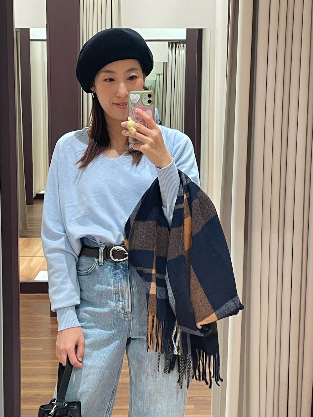トップスのVネックニットは着心地にこだわった肌触りの良いニットになっております‼︎