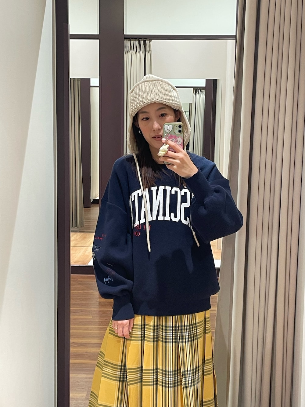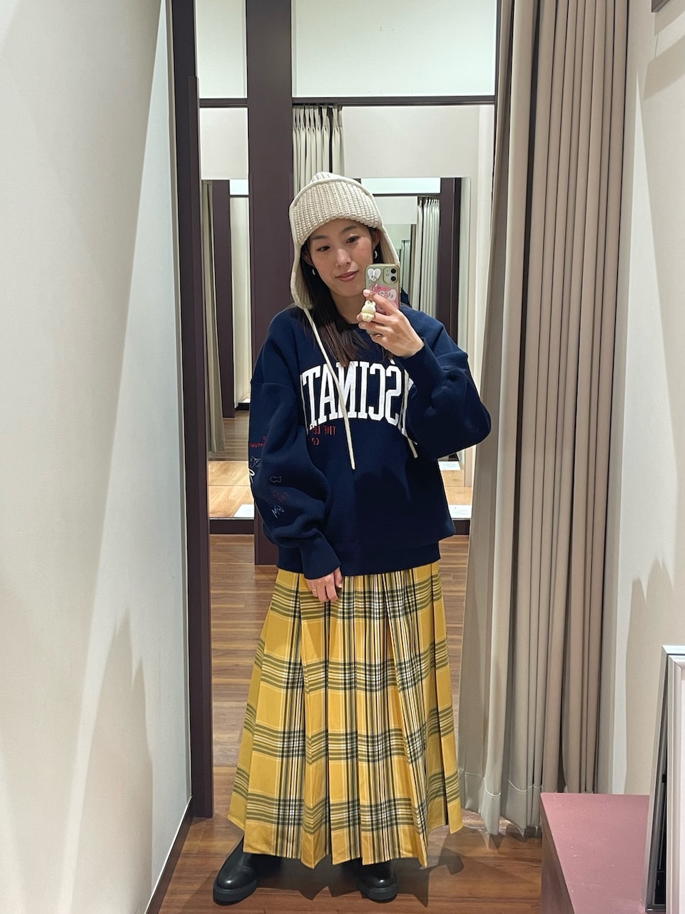 チェックスカートが目を惹く大人カジュアルコーデです✨