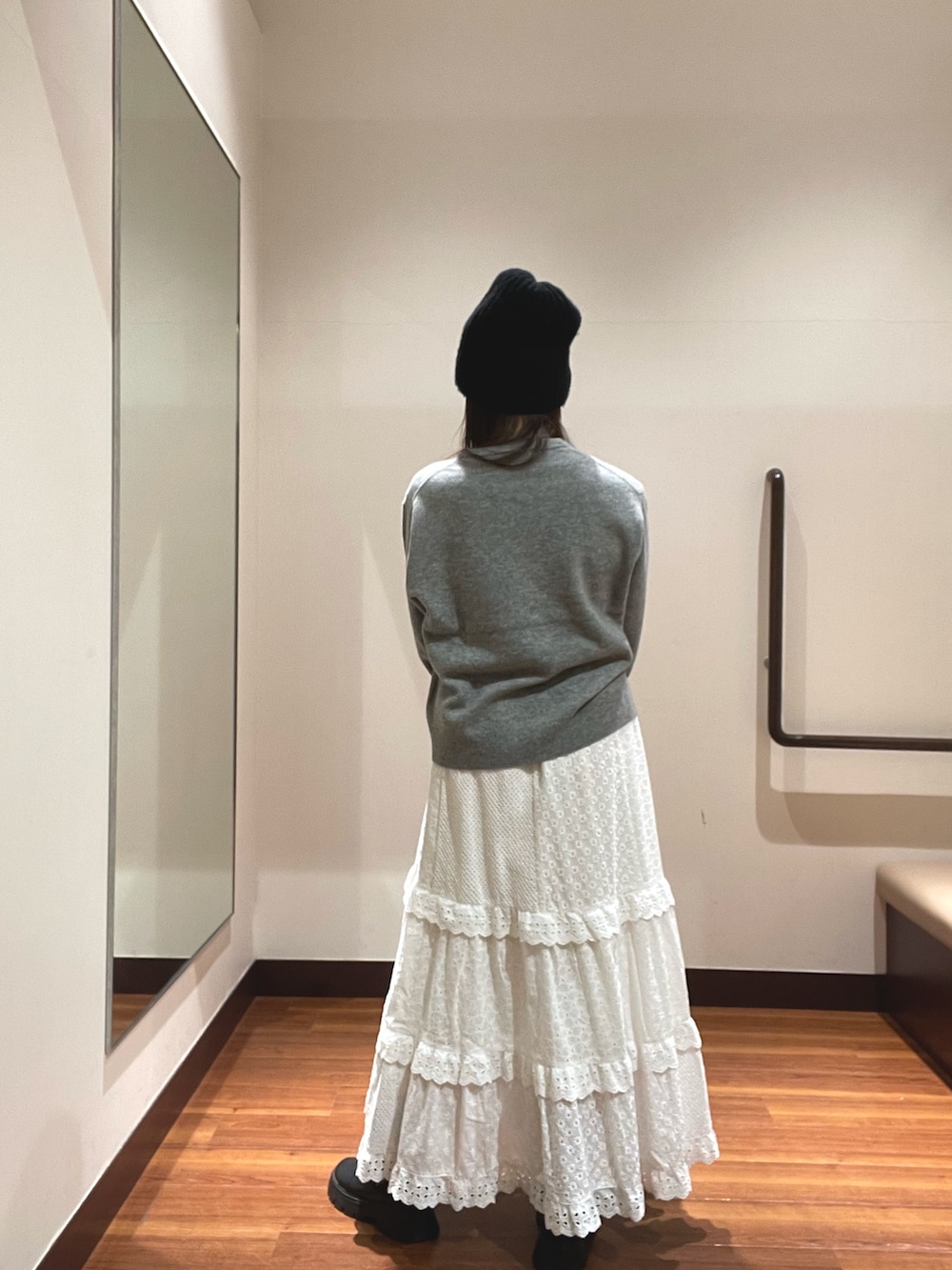 スカートがフリルで可愛いデザインなのでトップスはシンプルなニットでコーディネートしました‼︎