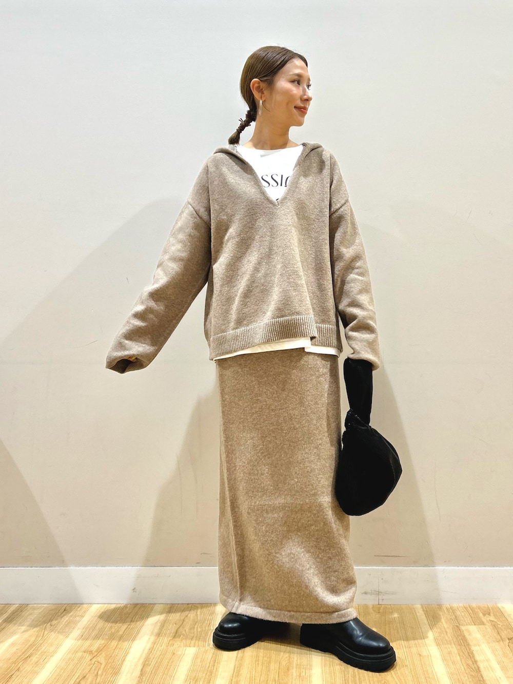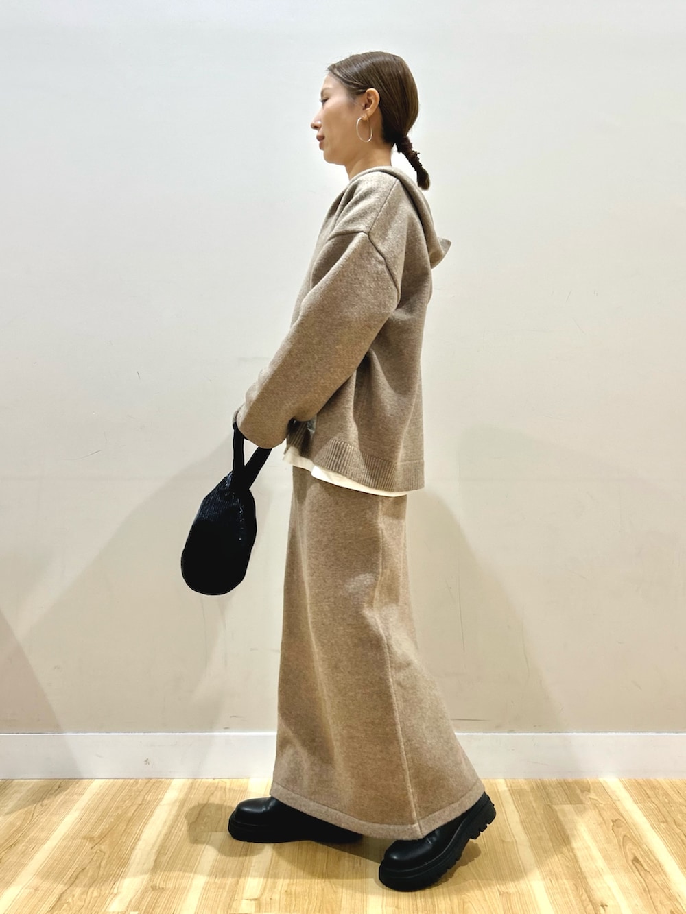 ニットのパーカーと