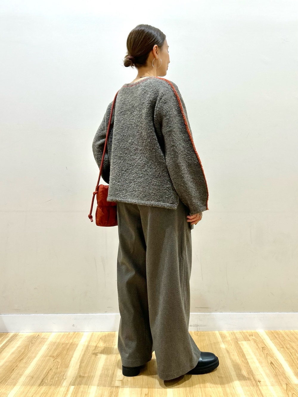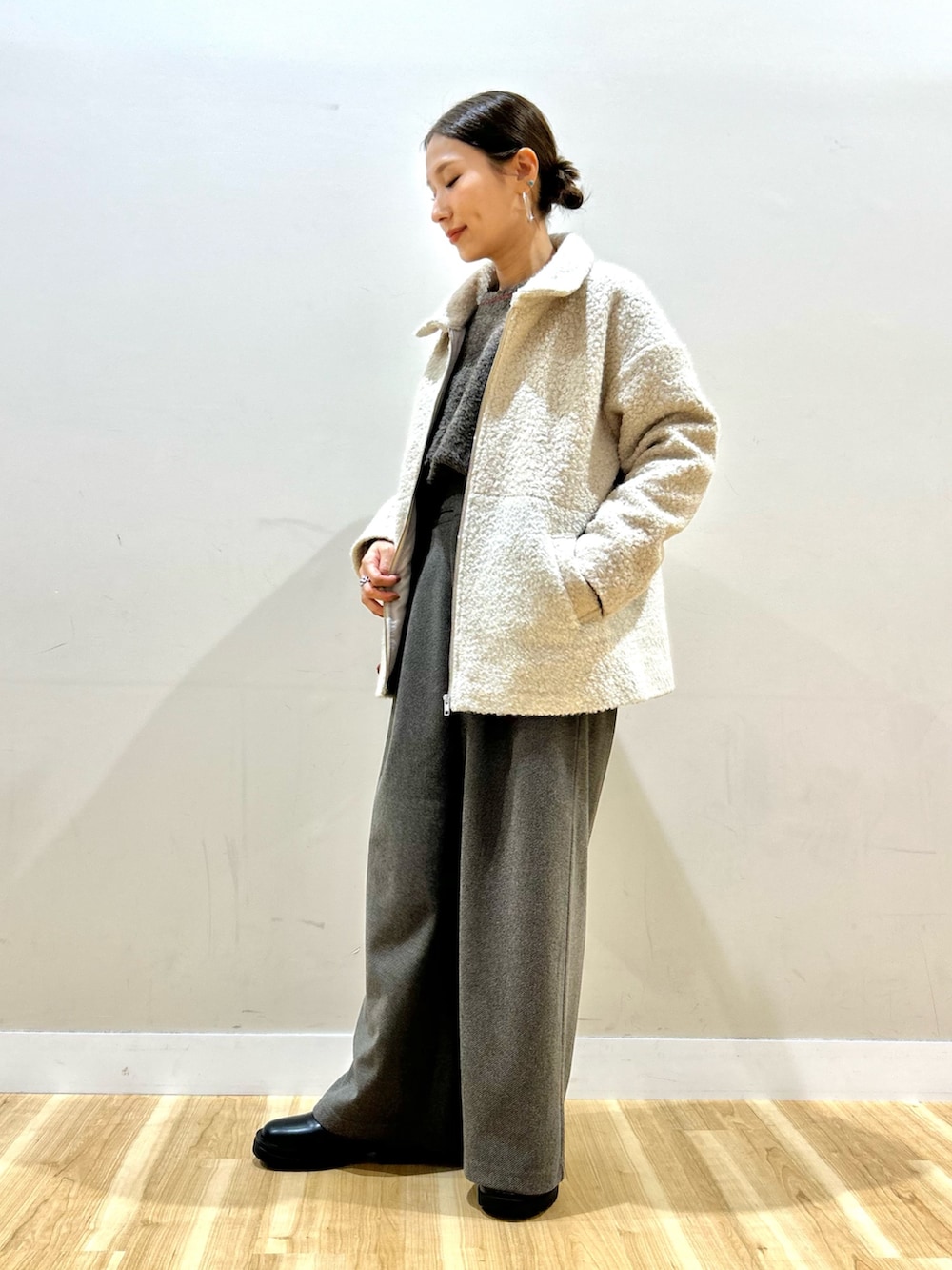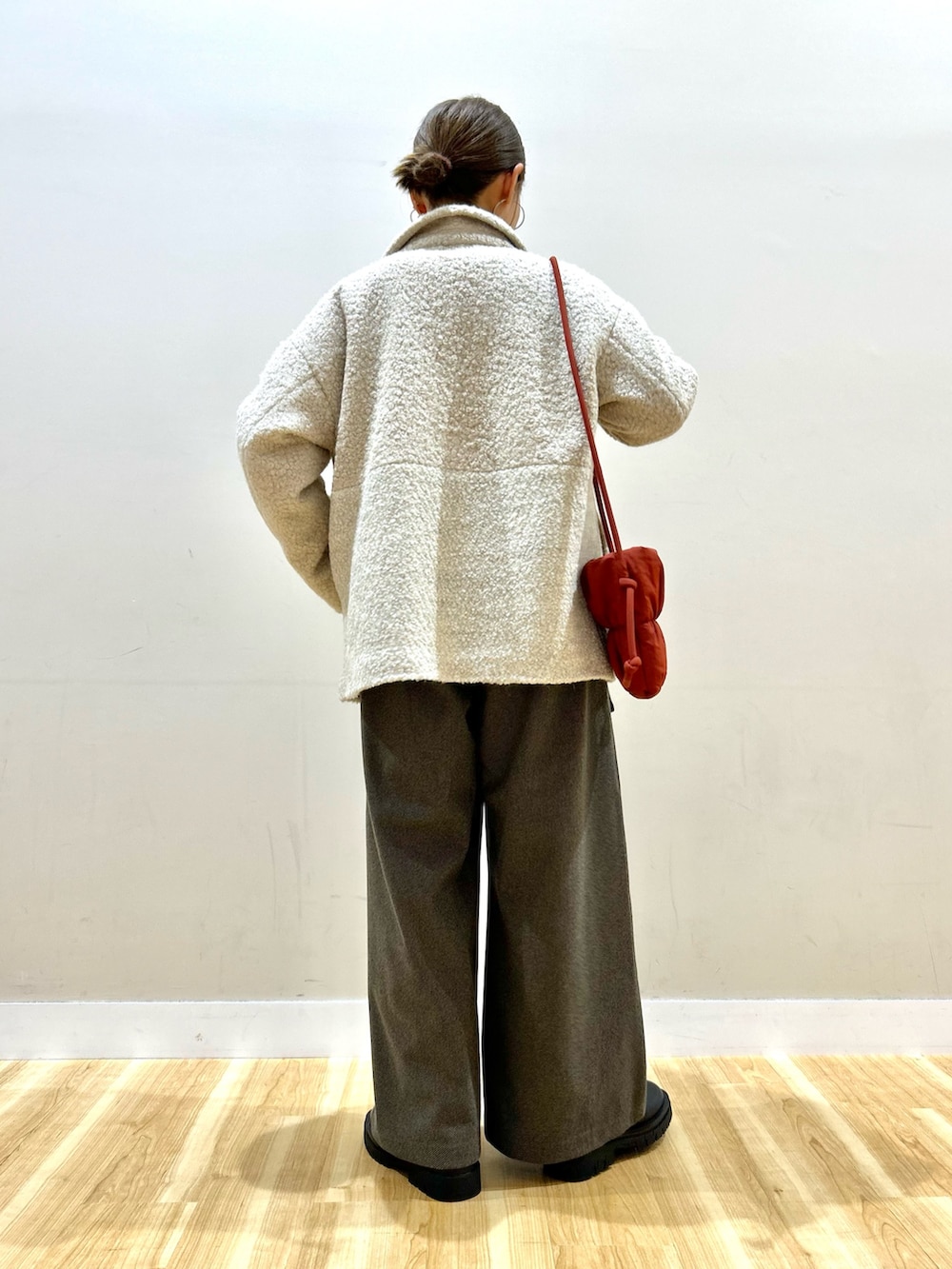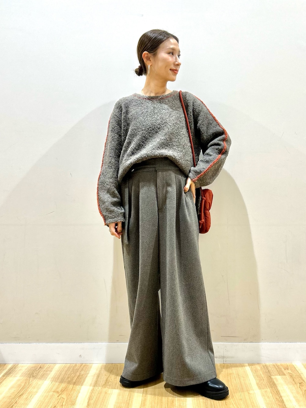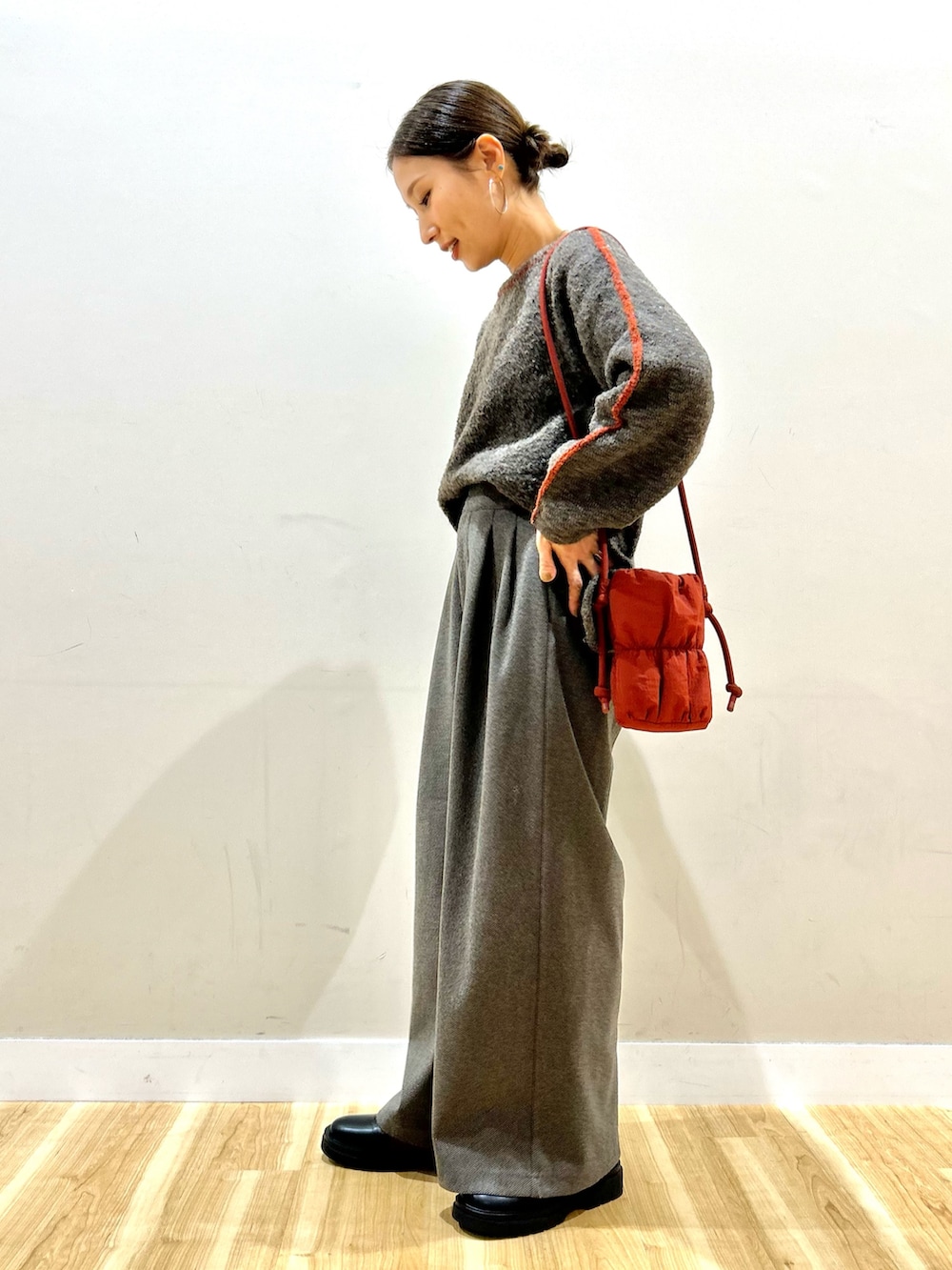 ワイドシルエットで丈感短めなので、