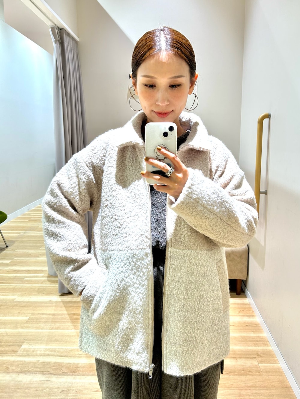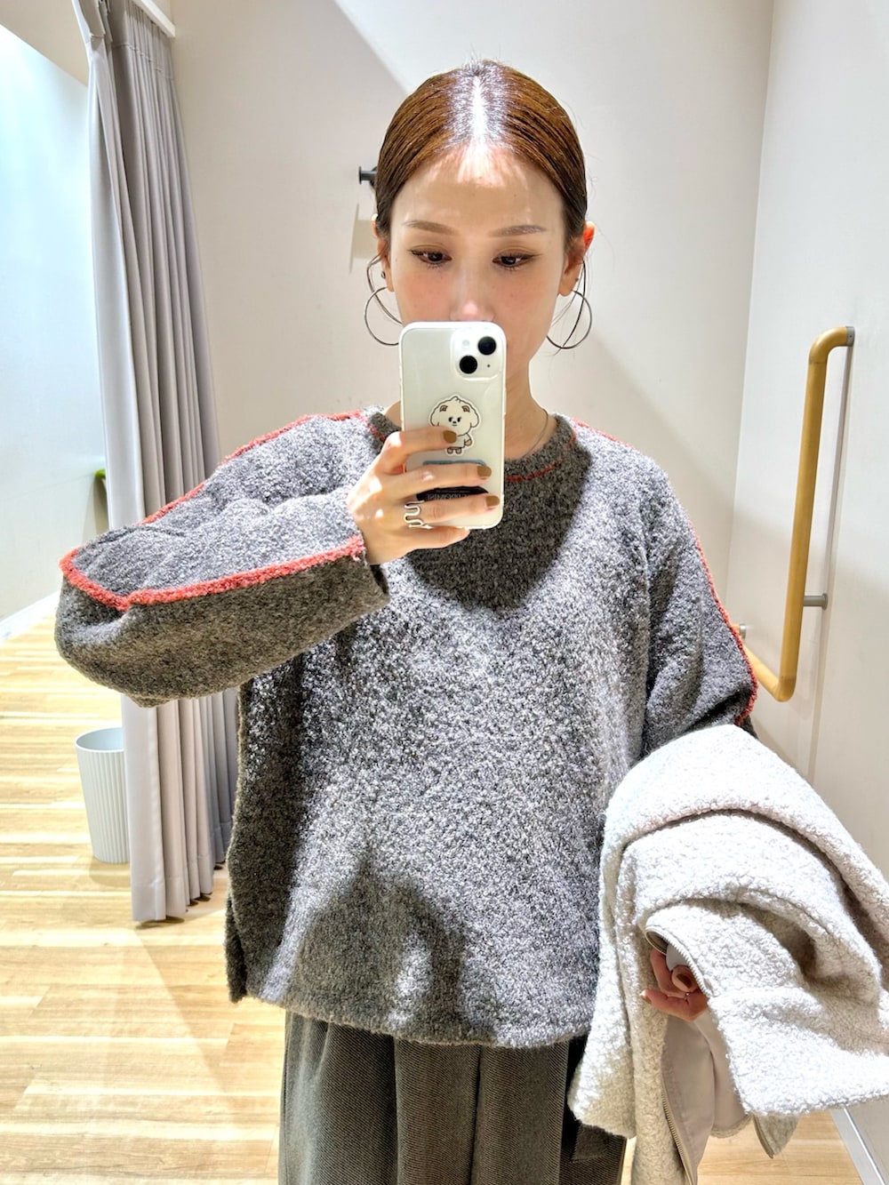 ブークレのほわほわした肌触りが気持ちの良いニットは