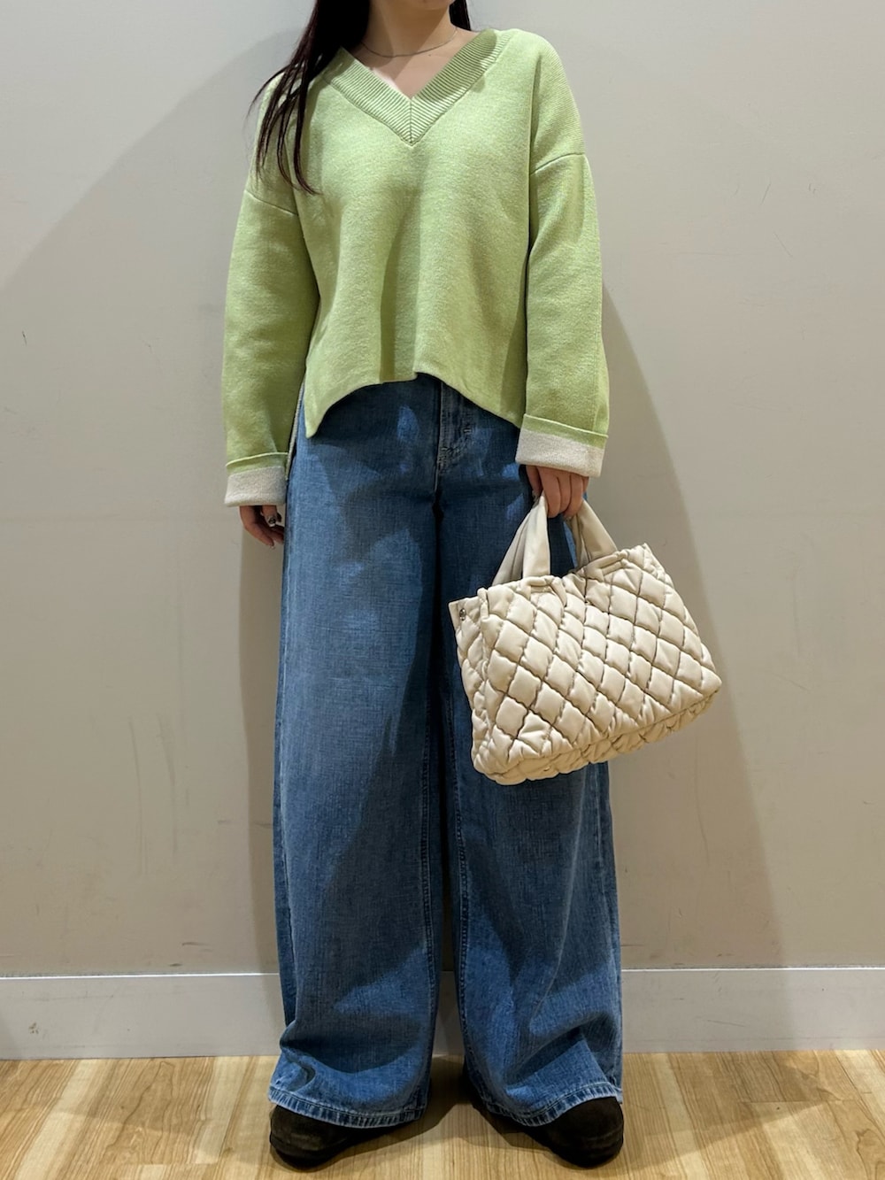 ほどよい深さのVネックが顔まわりをかなりスッキリ見せてくれます💚💚💚