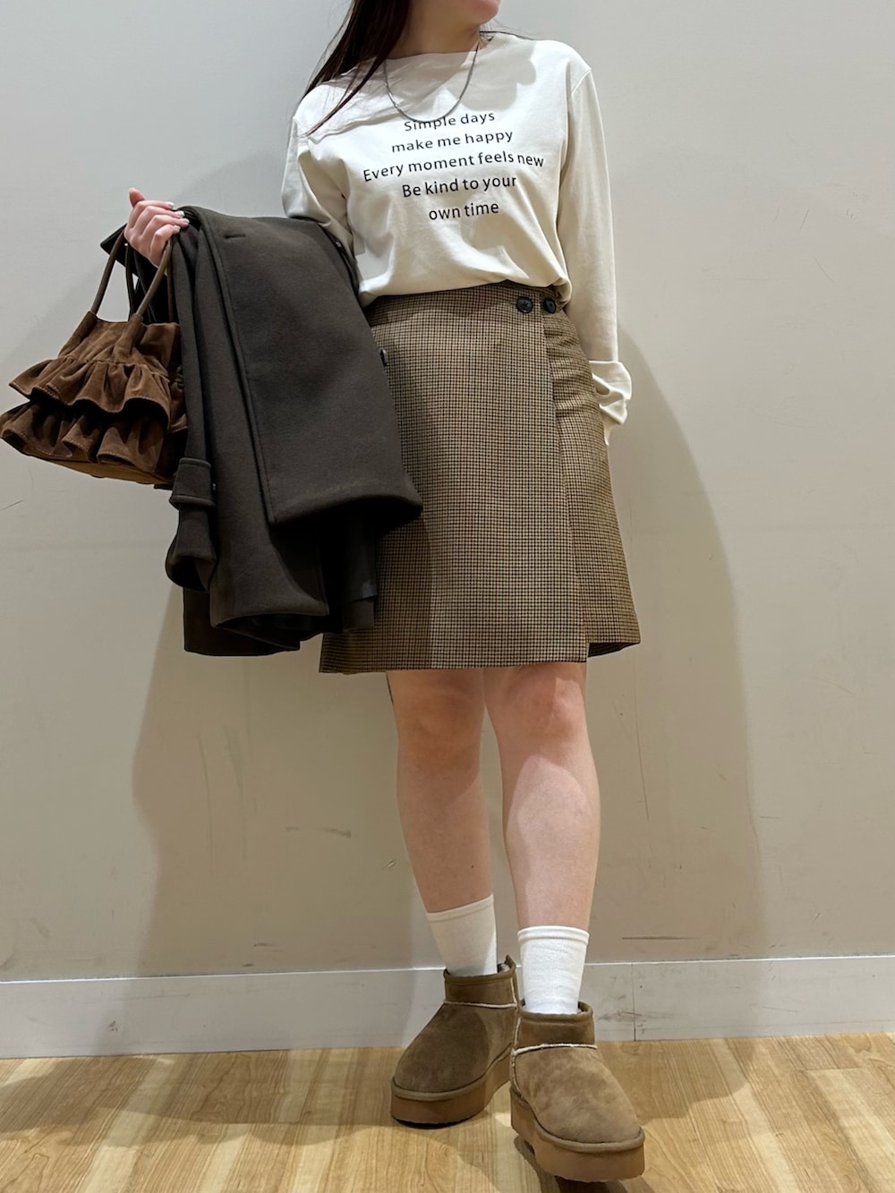 URBAN RESEARCHウールブレンドチェックスカート- 着用カラー: