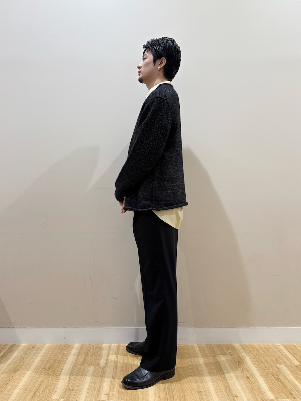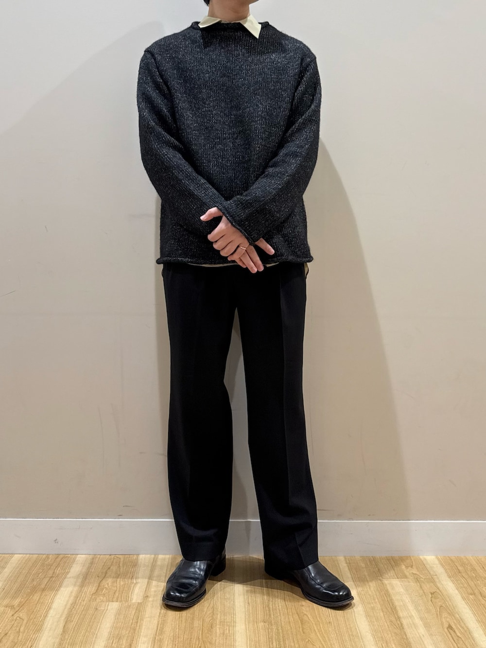 ニットは袖口や裾口が全てロールになっていて、かっちりしすぎず、程よい抜け感を出してくれます。