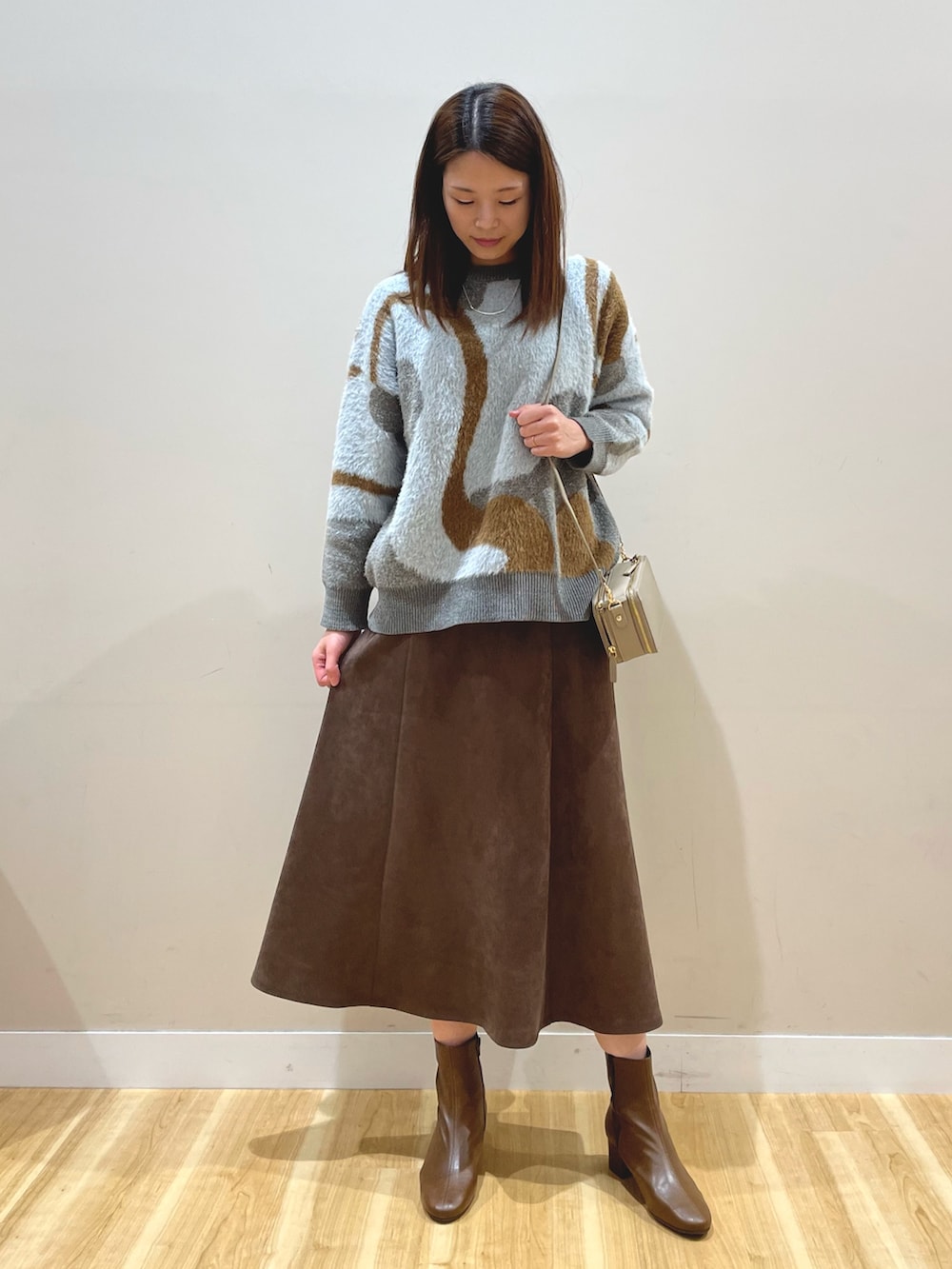 ITEMSフェイクスエードタックフレアスカート- カラー: