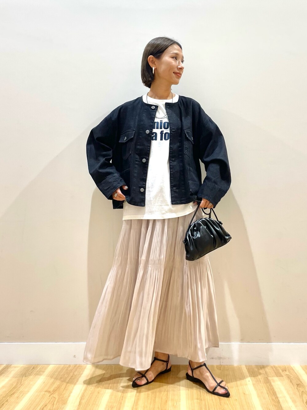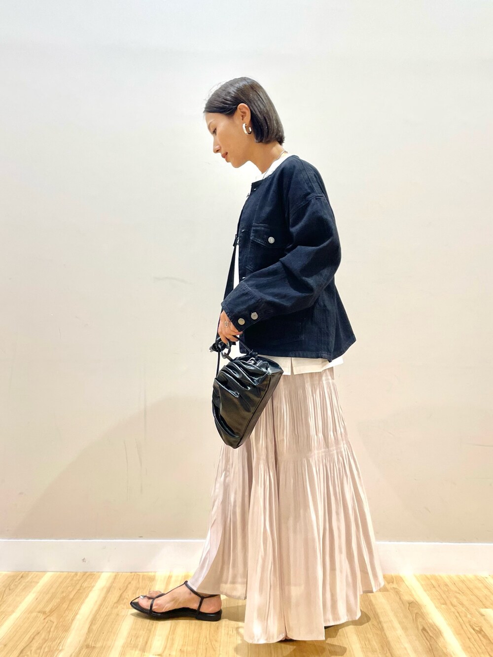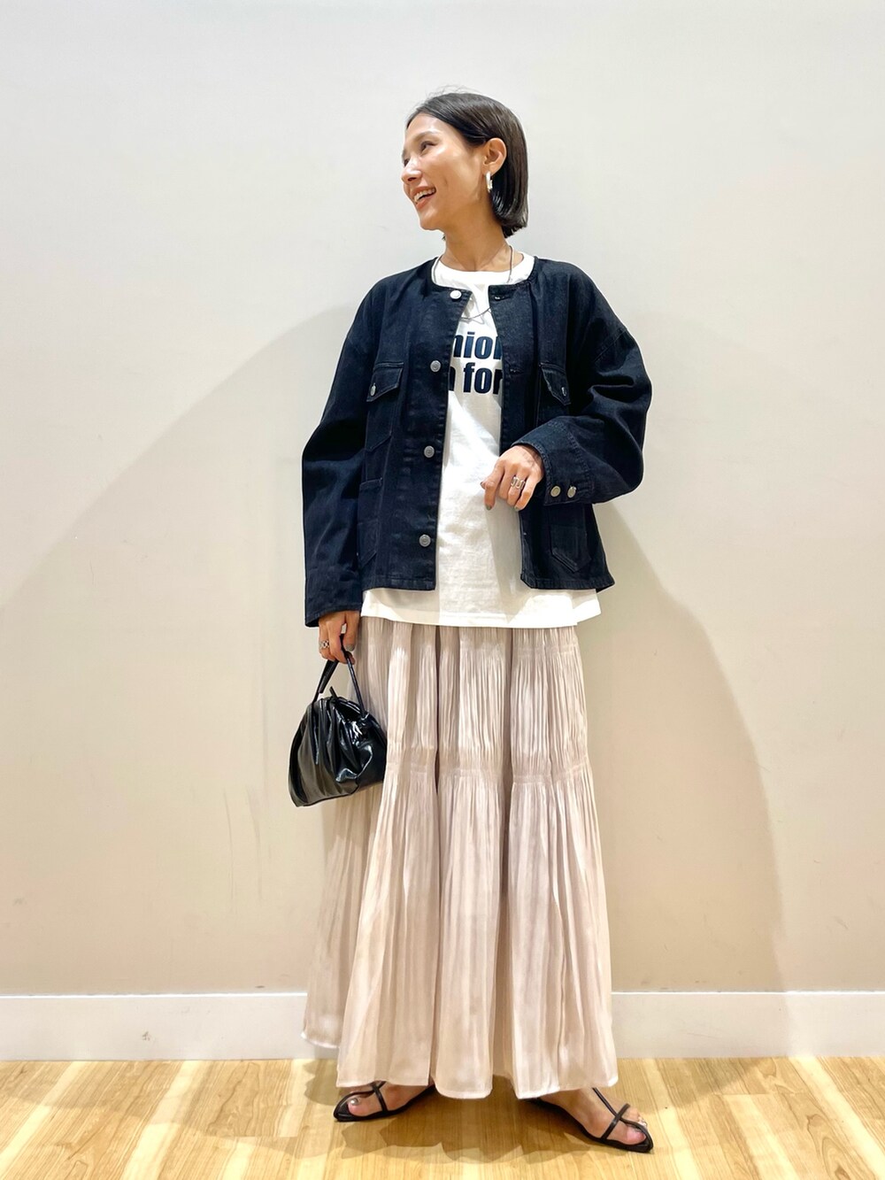 シャイニースカートはコーデのポイントに。