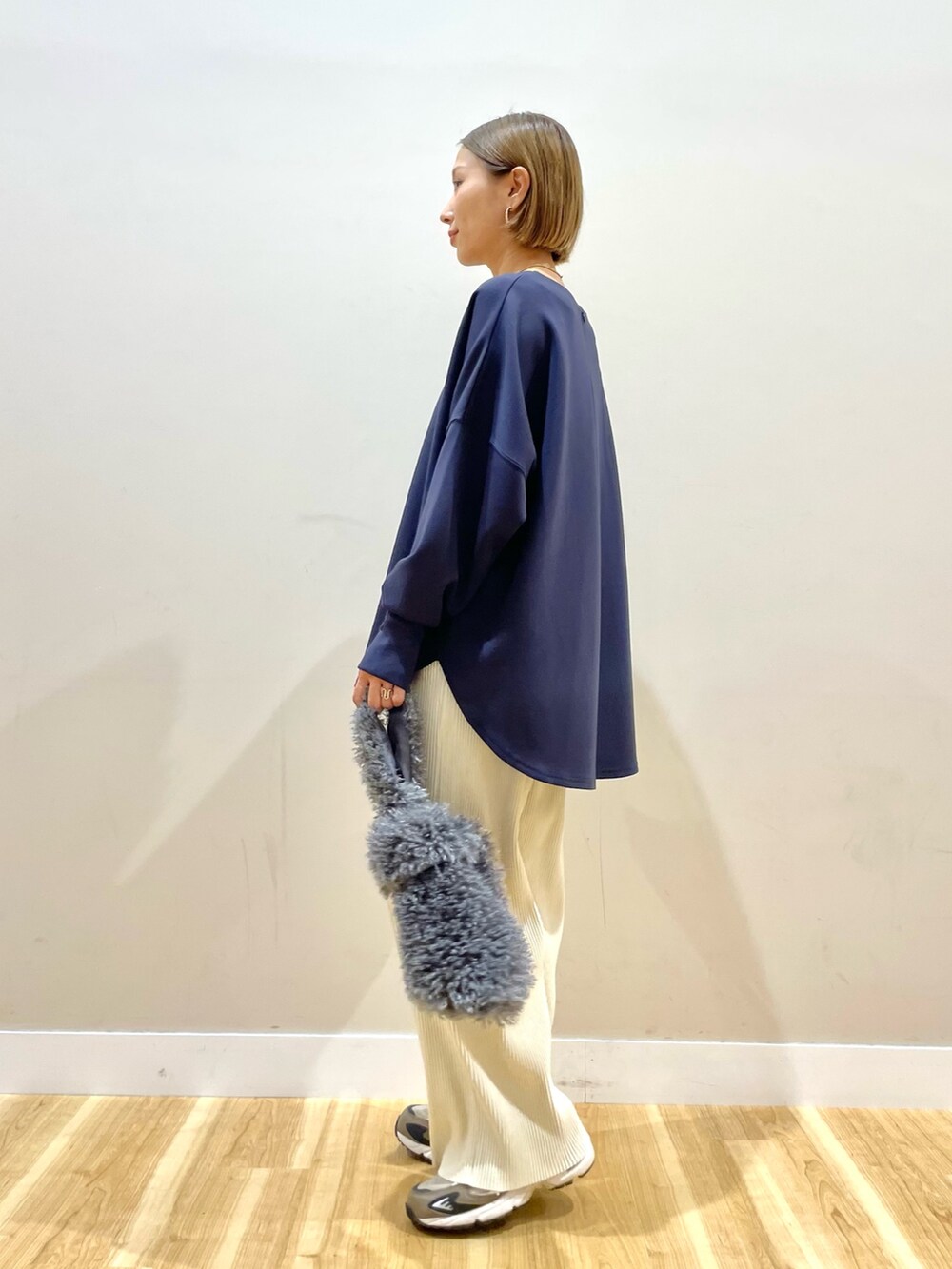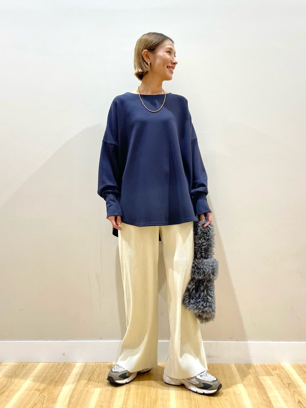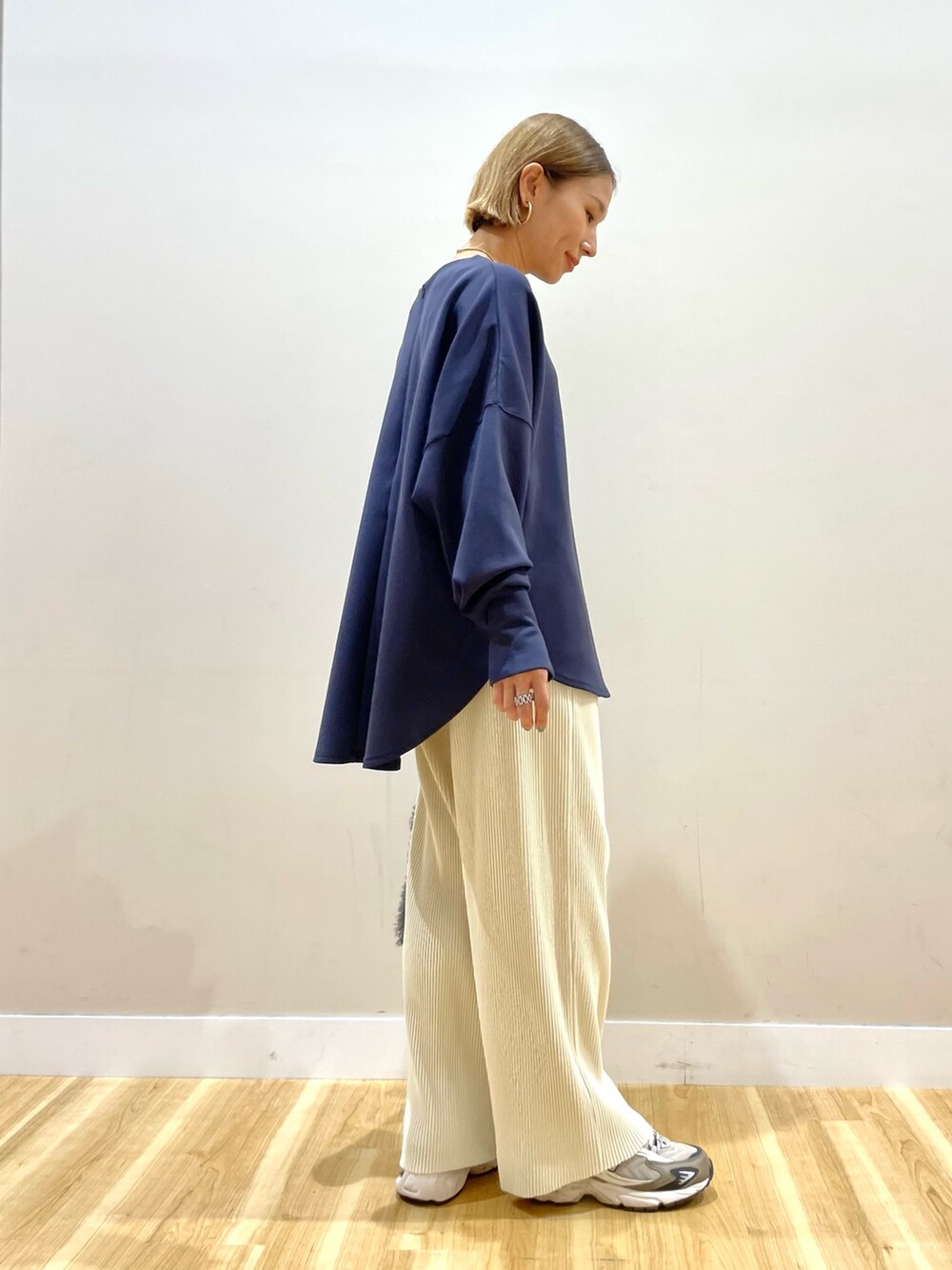 ボトムスのプリーツパンツはトップスを選ばず楽ちんに着られて、店頭でも大人気商品です💕