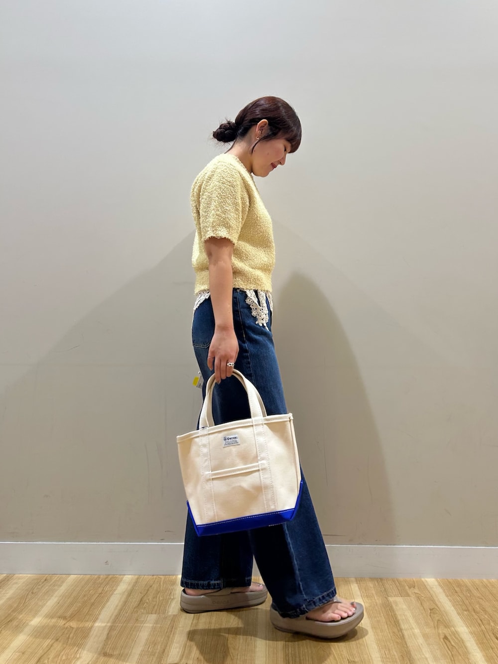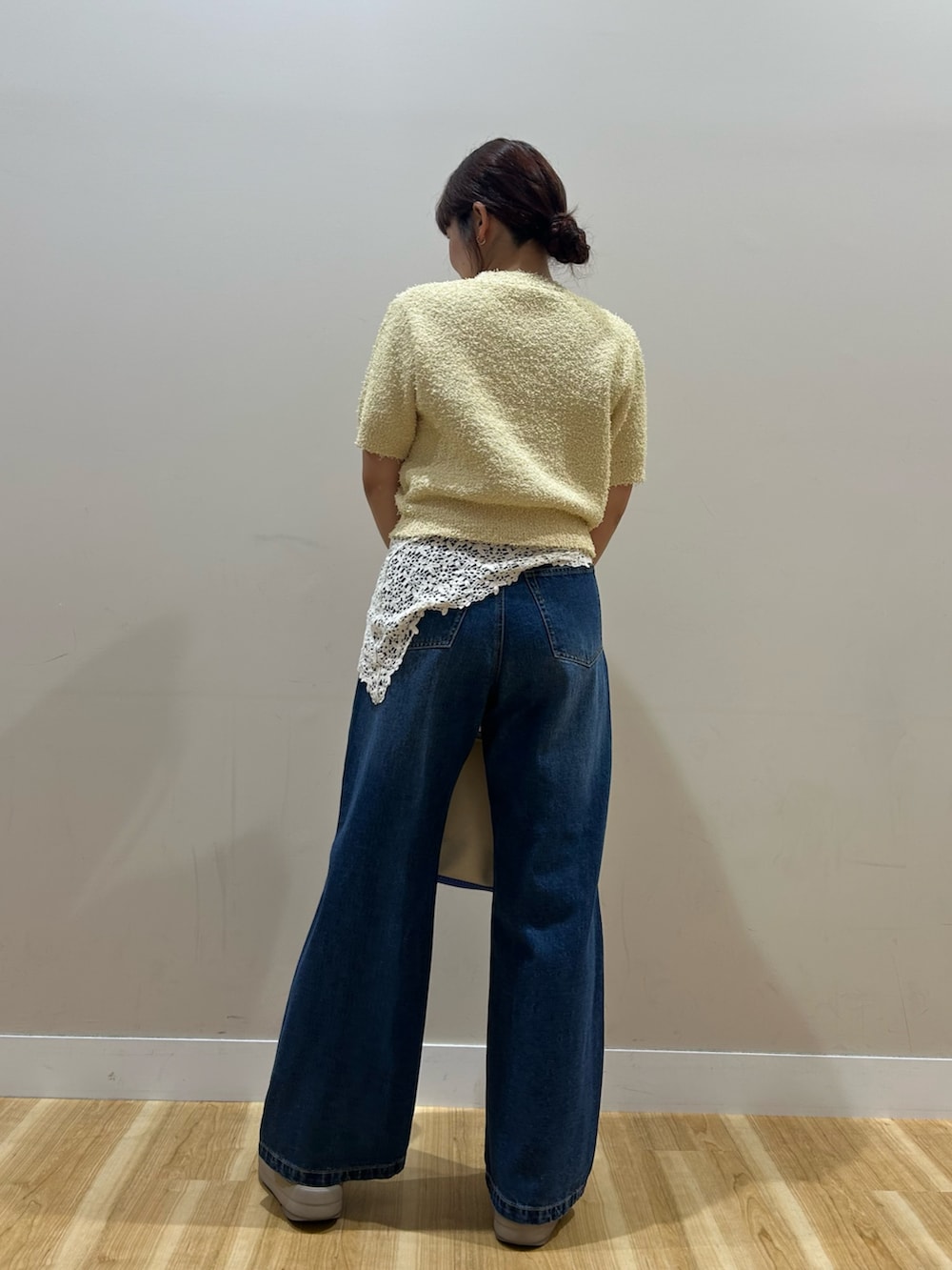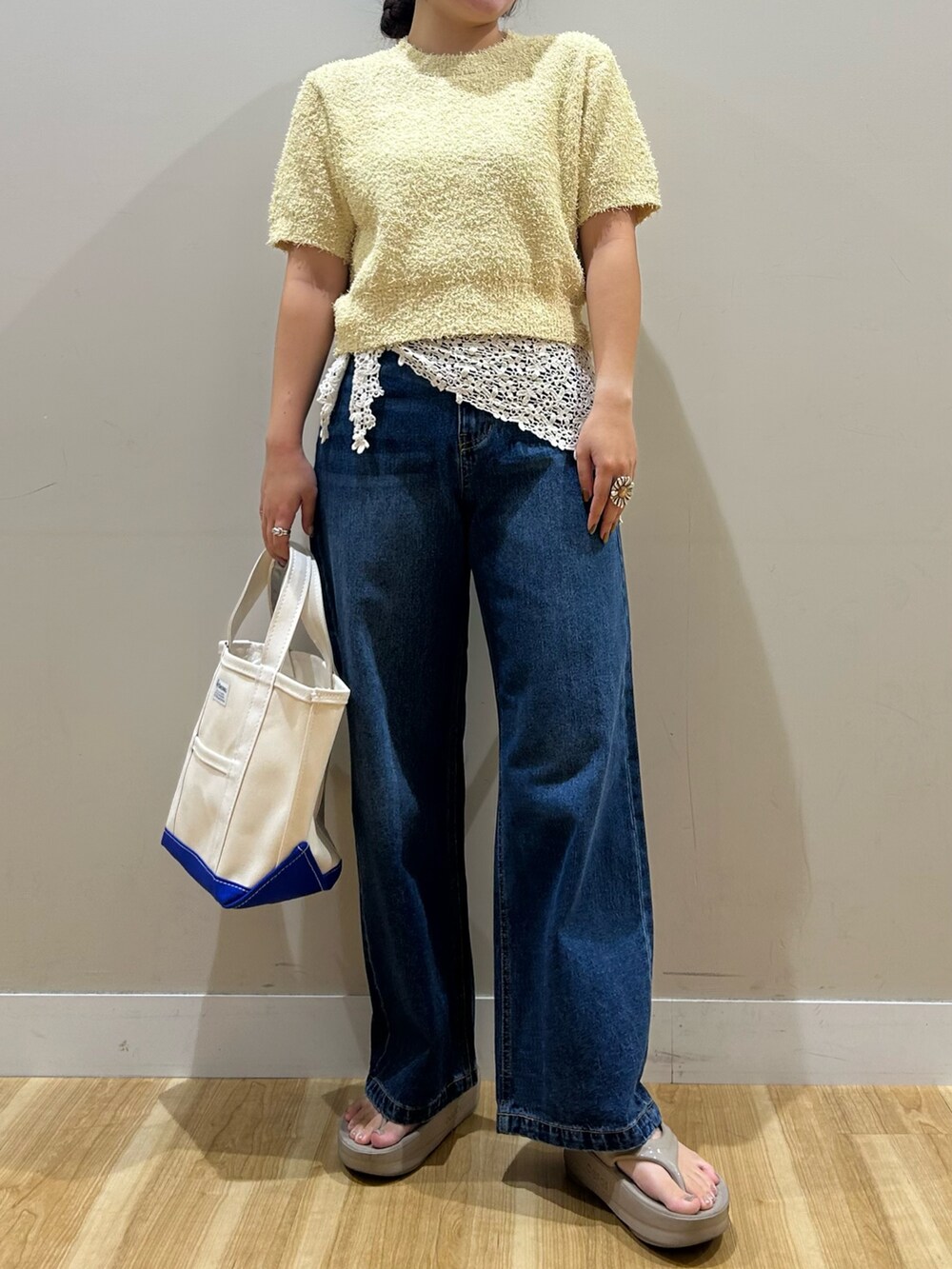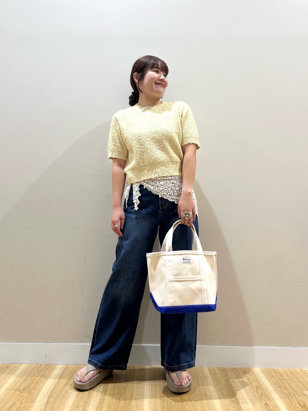 ニットは素材から秋を取り入れられるのでまだまだ暑い今時期におすすめ◎
