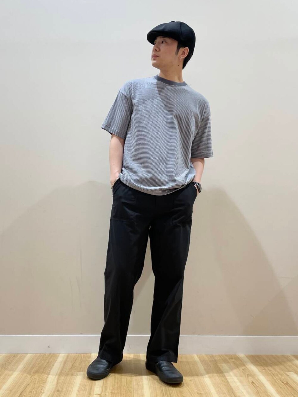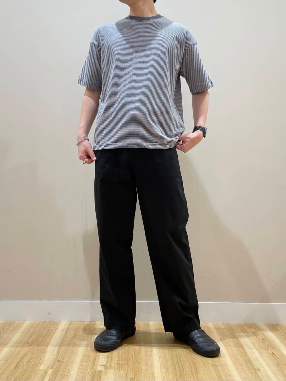 Tシャツはボーダーでゆとりのあるサイズ感なので男性でも女性でも着られるかと!