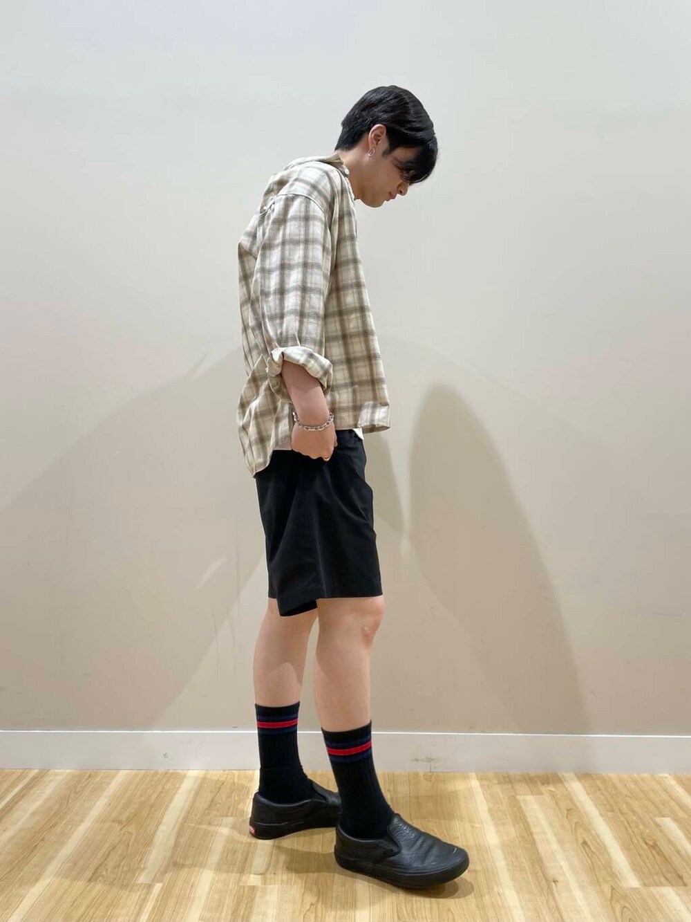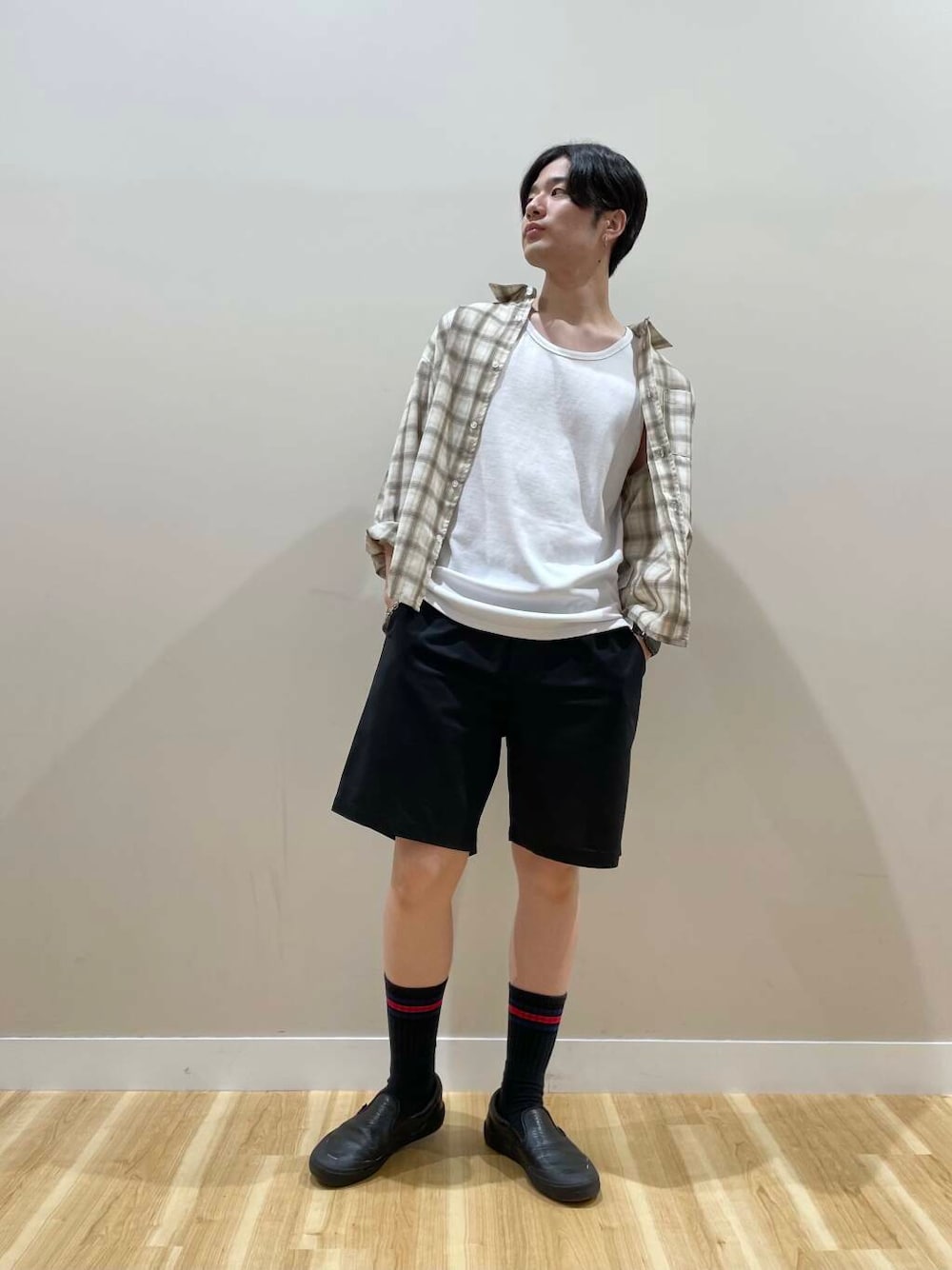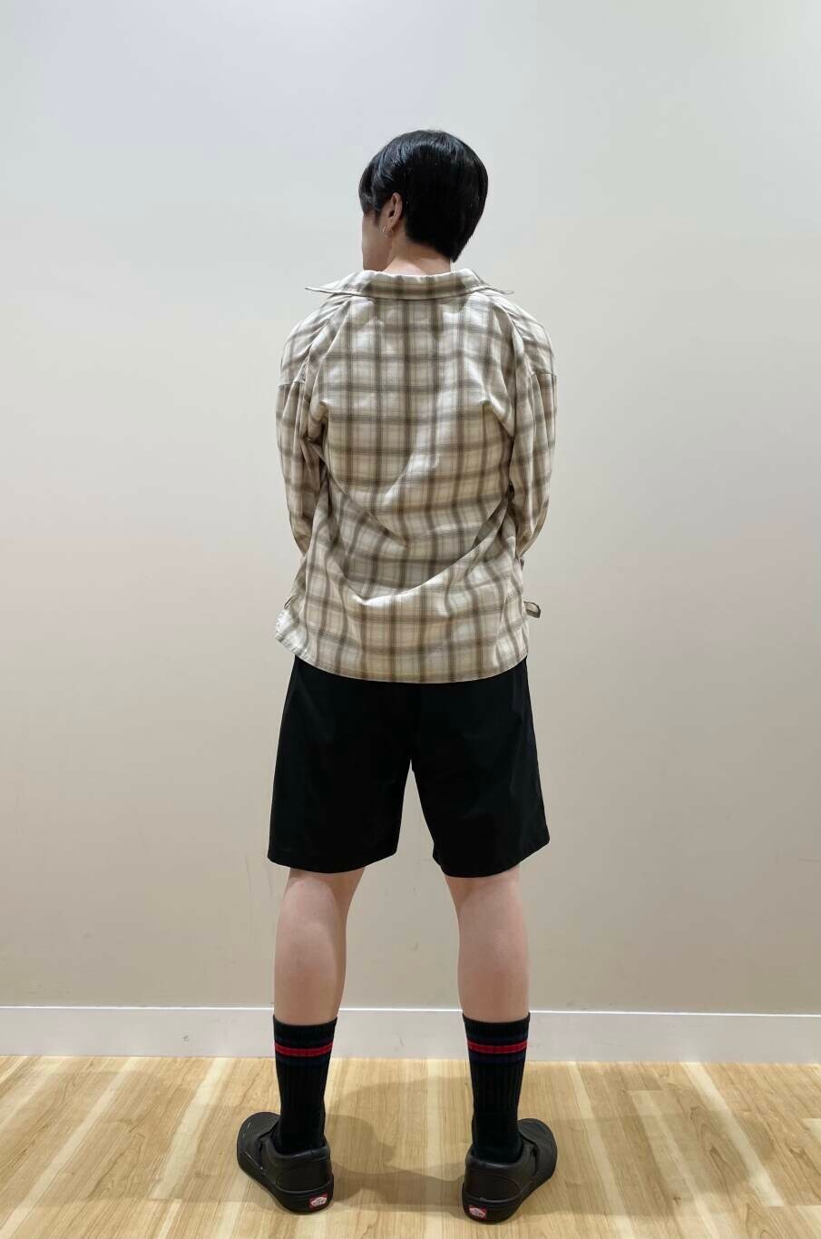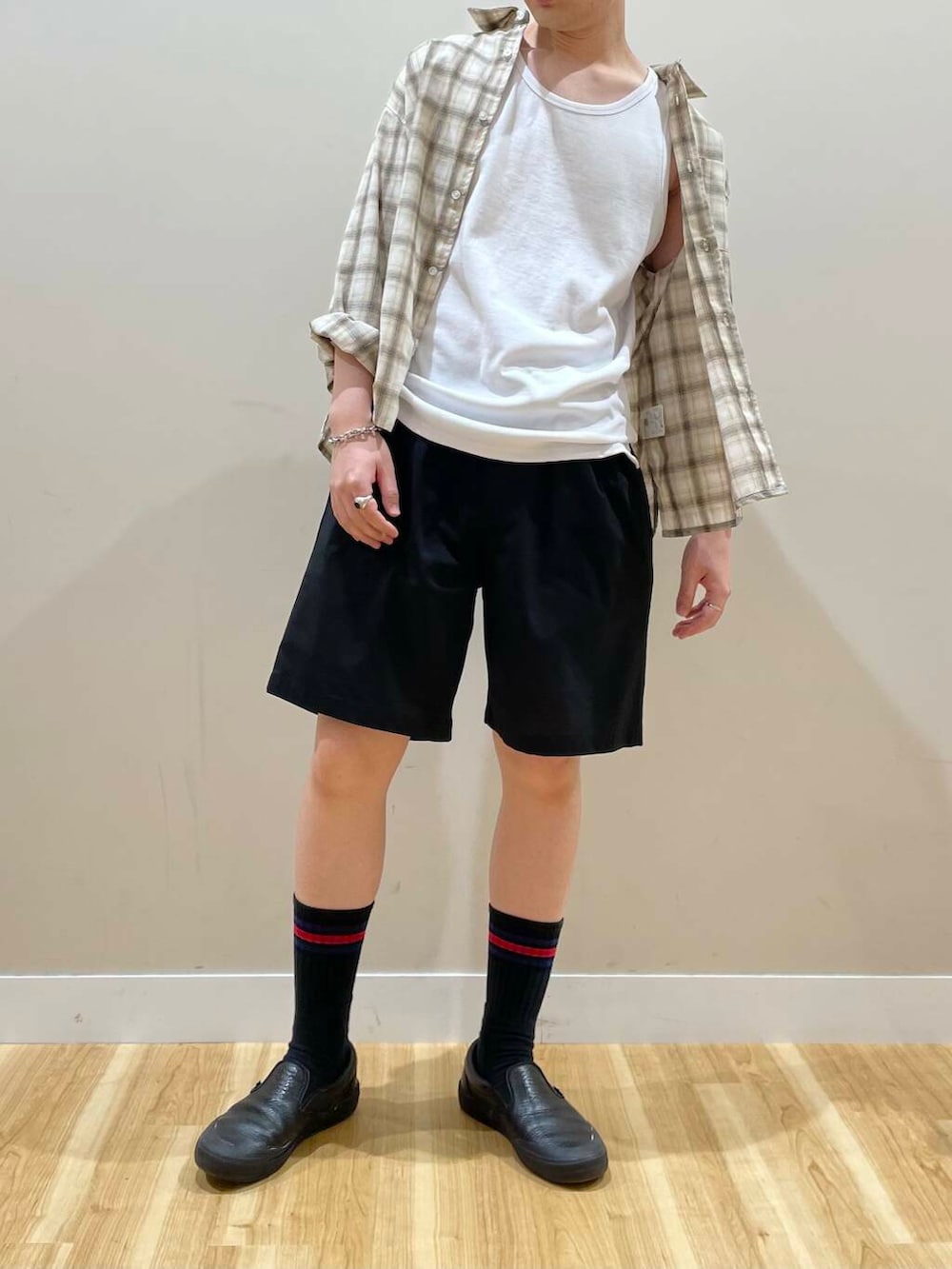 タンクトップにショーツ、肩にシャツをかけるだけで意外と様になりますー