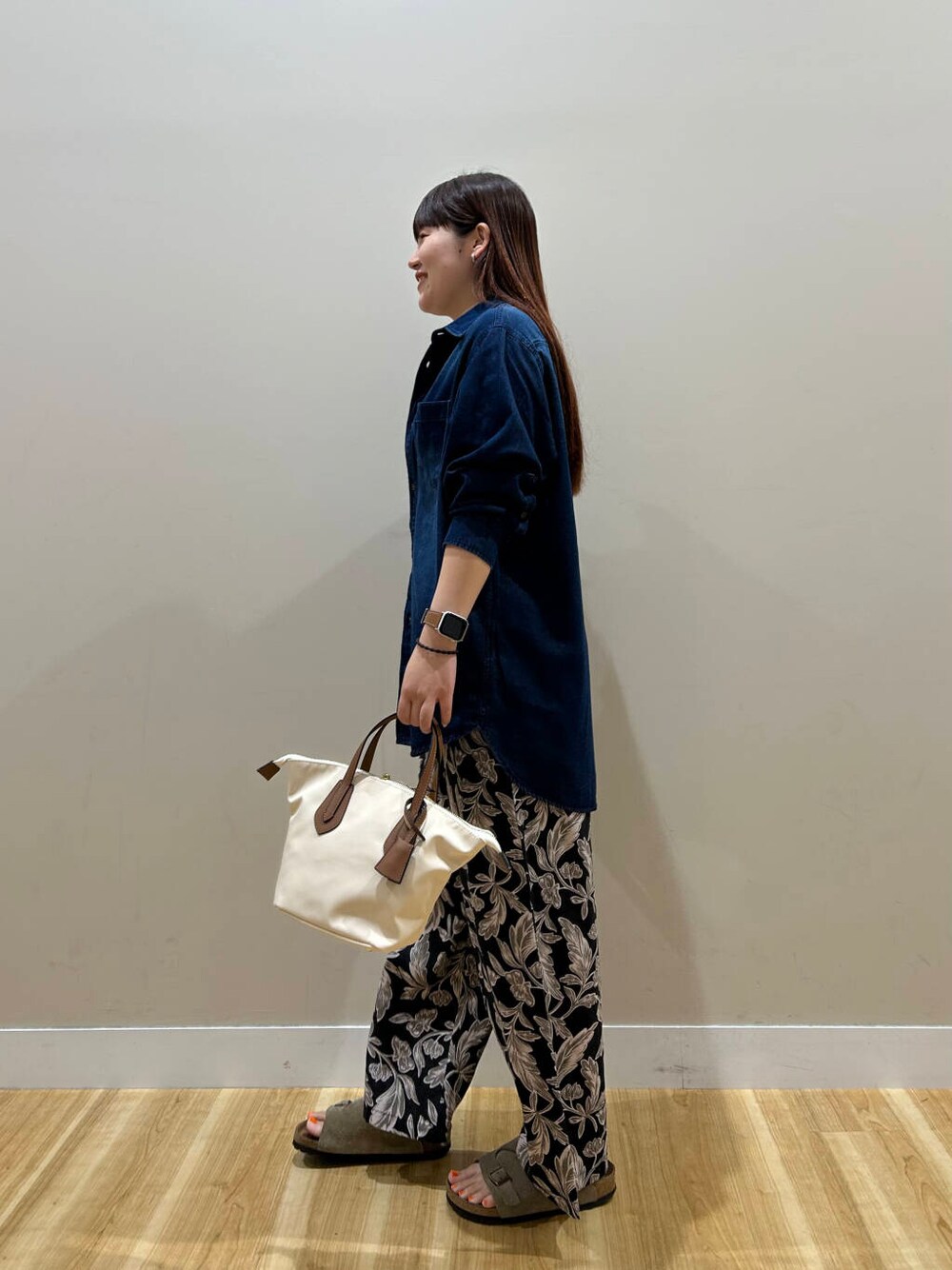 リネンのワイドパンツはお色味落ち着いてるので晩夏のコーディネートにももってこいです^^