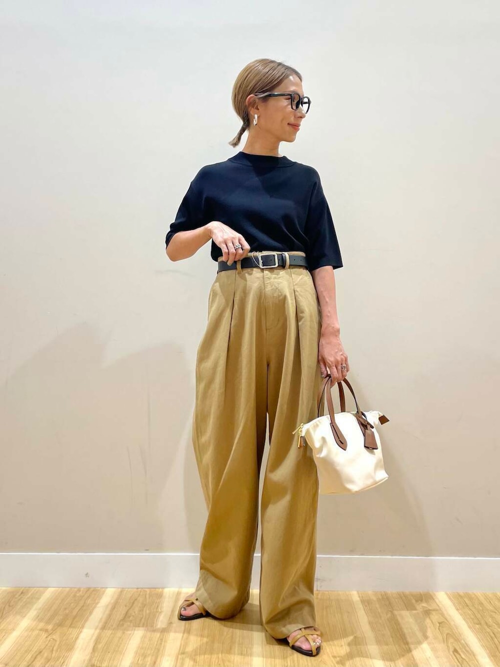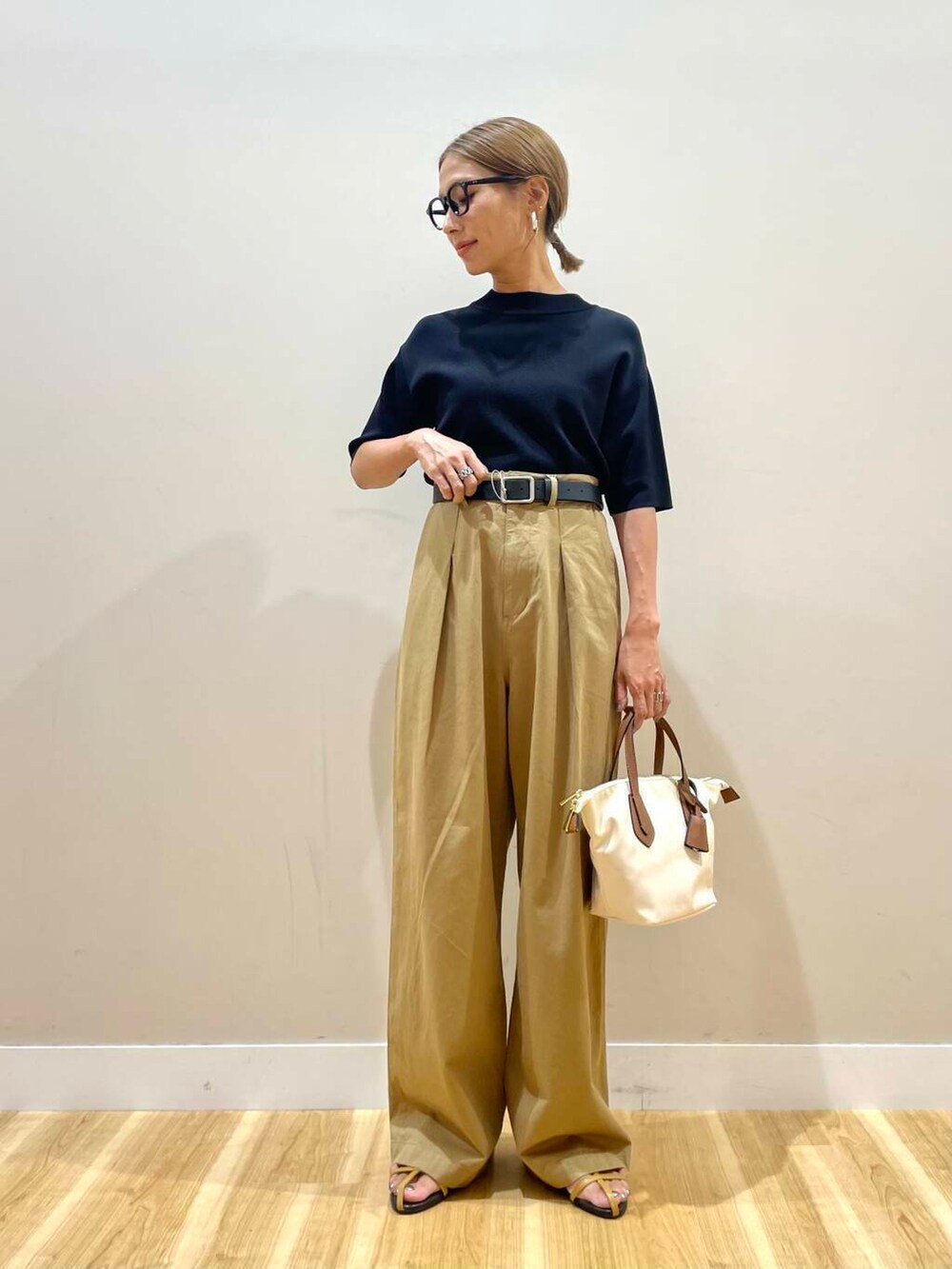 肉感も拾わず、ワイドながら美脚見えなパンツです💕