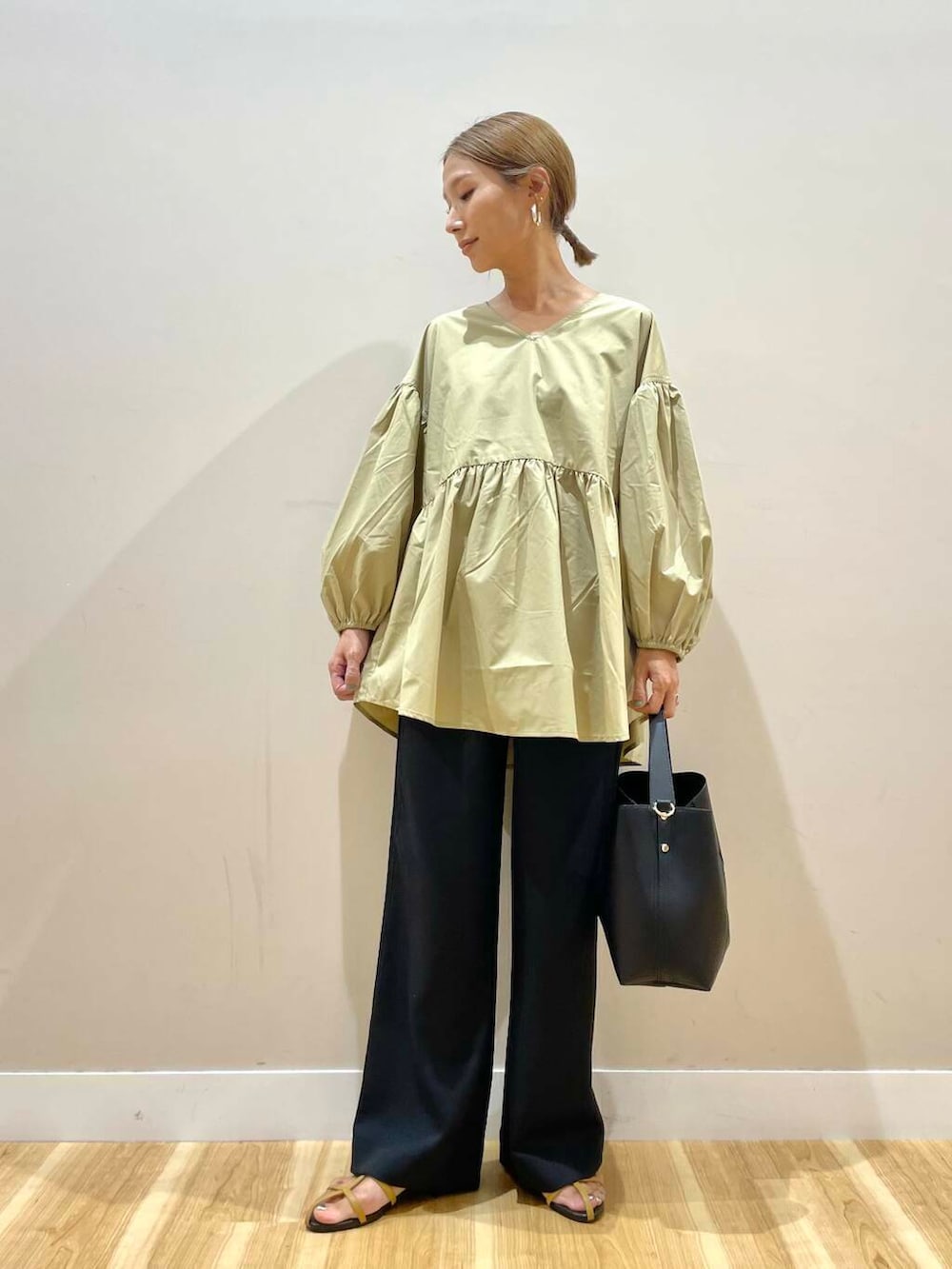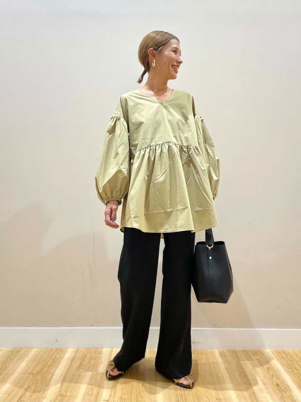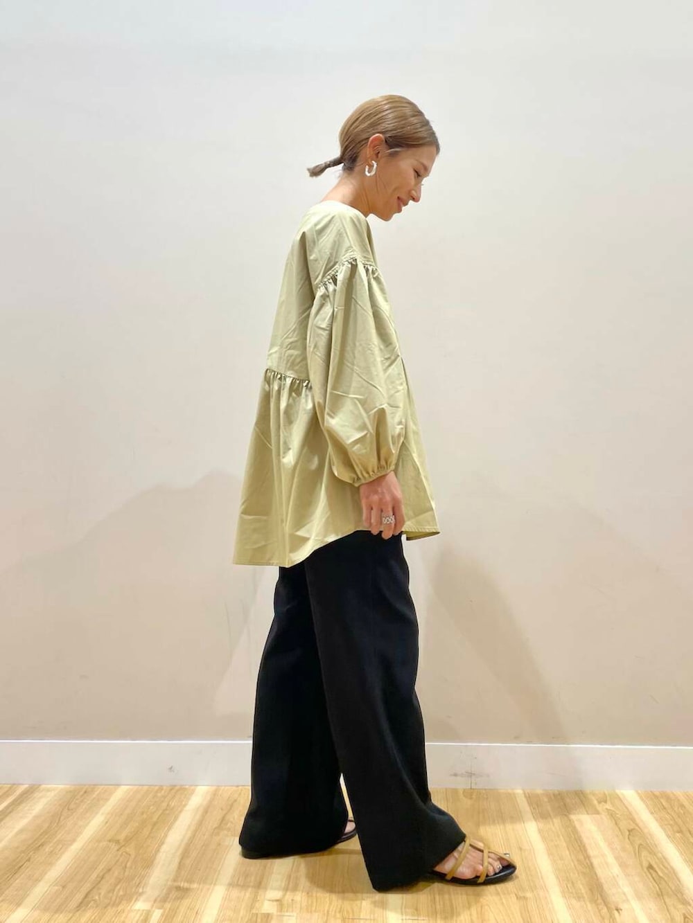 ワイドパンツにもタイトめなボトムスにも合います!
