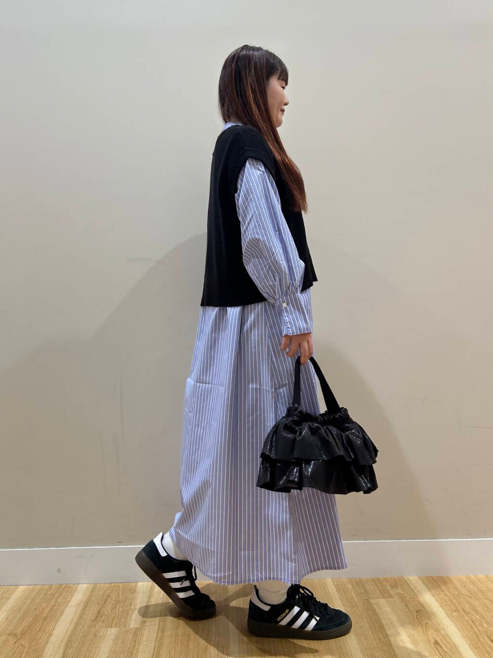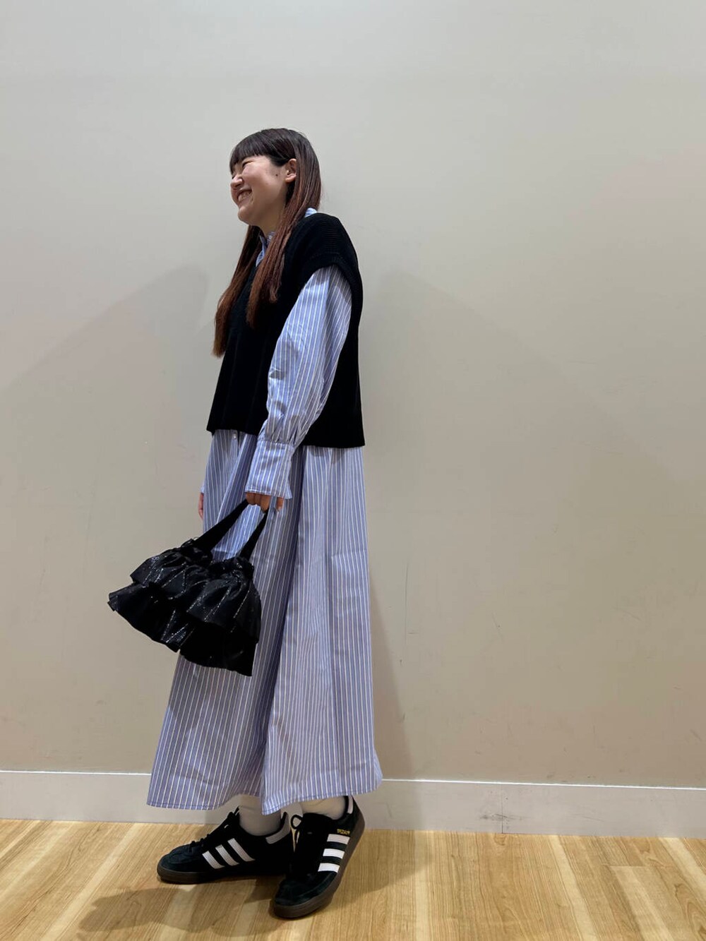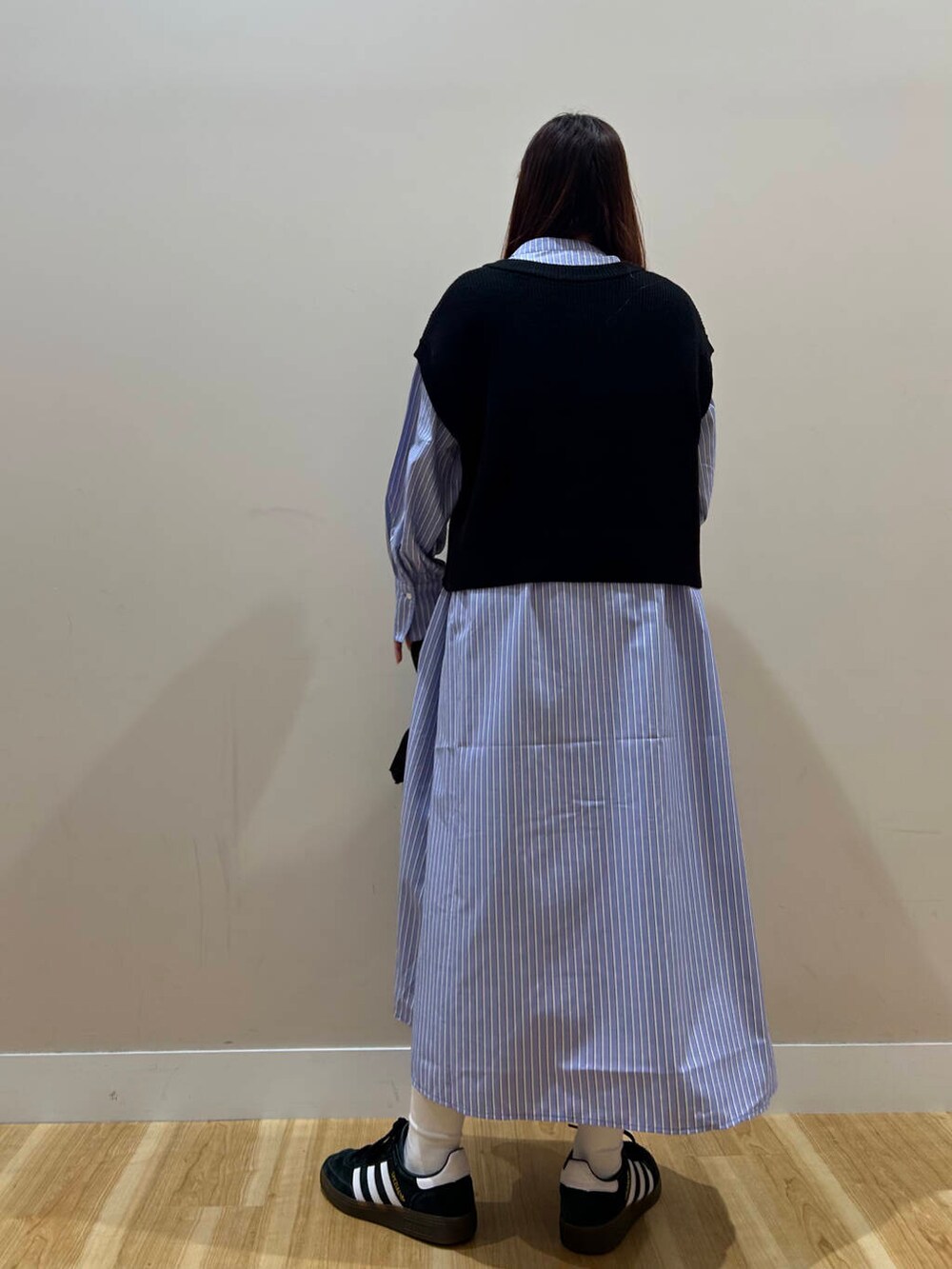 今ぐらいの気温感だったらニットベスト単体で着ていただくのがおすすめです!