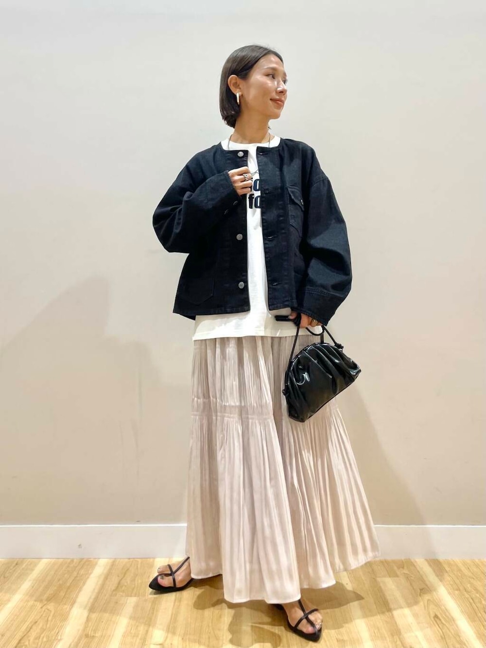 シャイニースカートはコーデのポイントに。