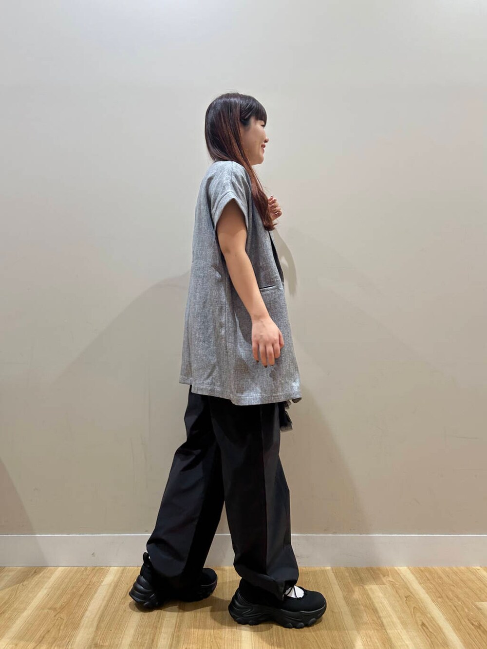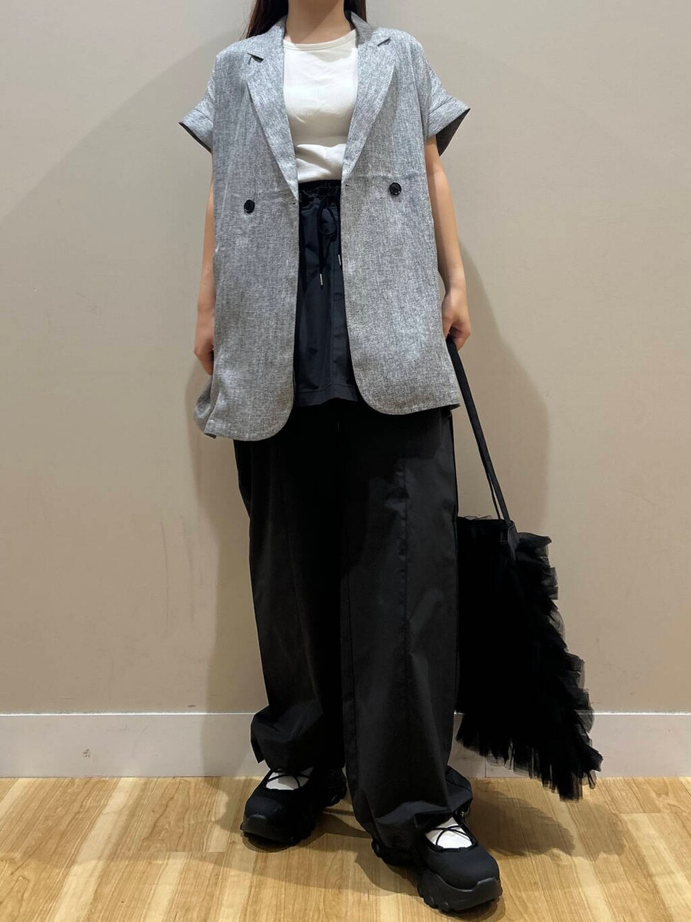 今時期ぴったりのジレはかなりスッキリ見えするシルエットで体型カバーバッチリです◎