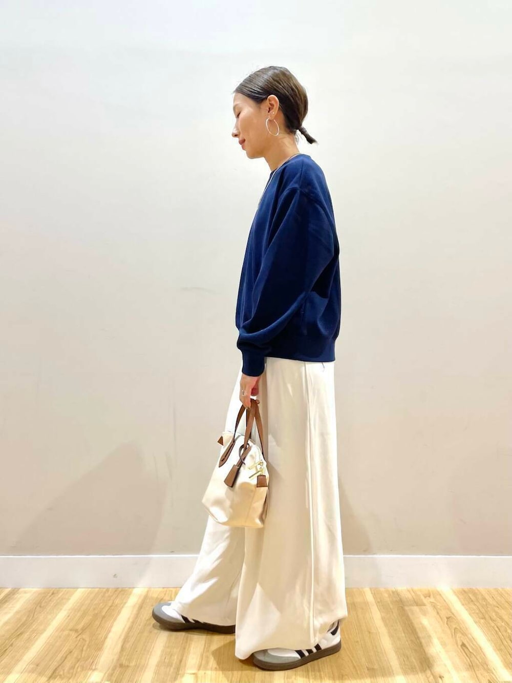 ボリューム感のあるボトムスと合わせると