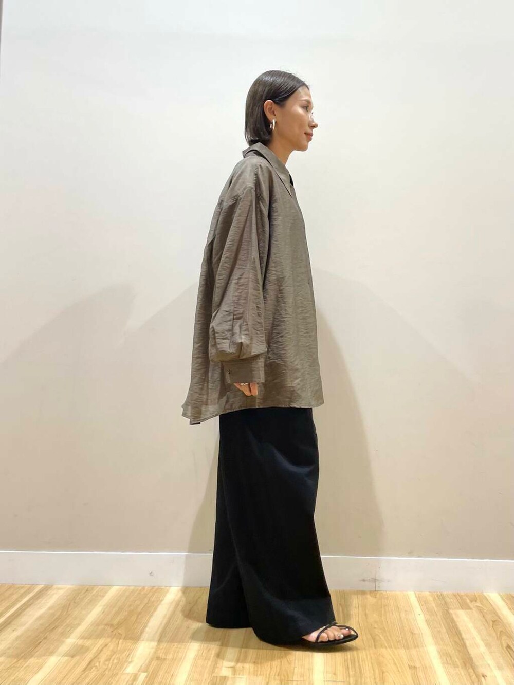光沢感が大人っぽいシアーシャツ