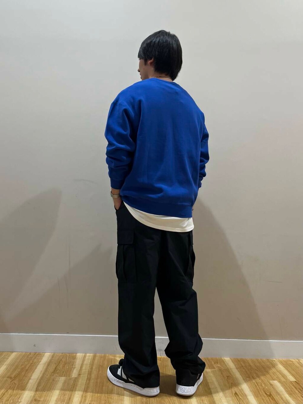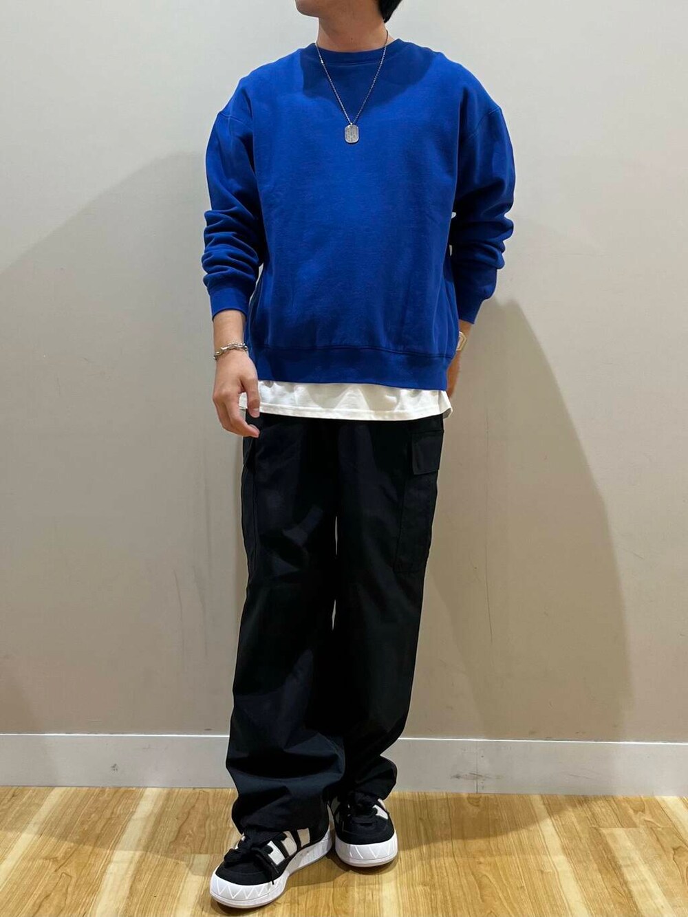 昼は暑いけど夜は寒い、そんな時のためのスウェットとレイヤードしているTシャツです。