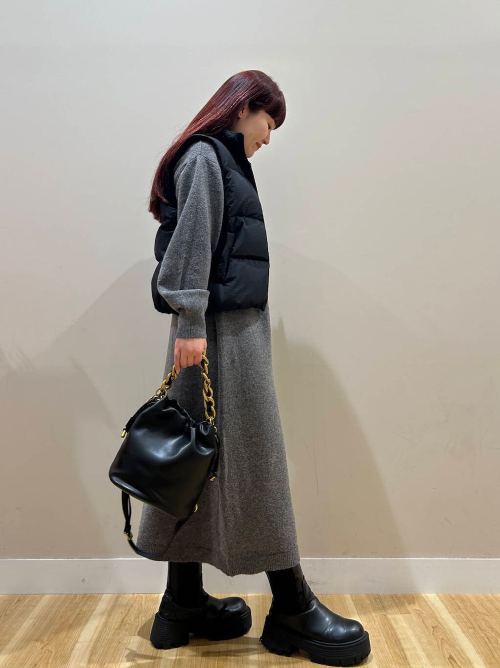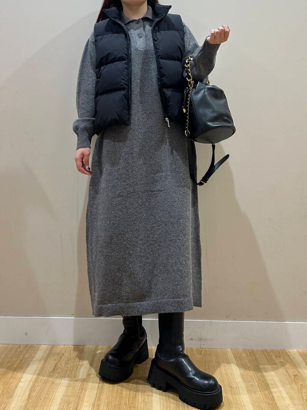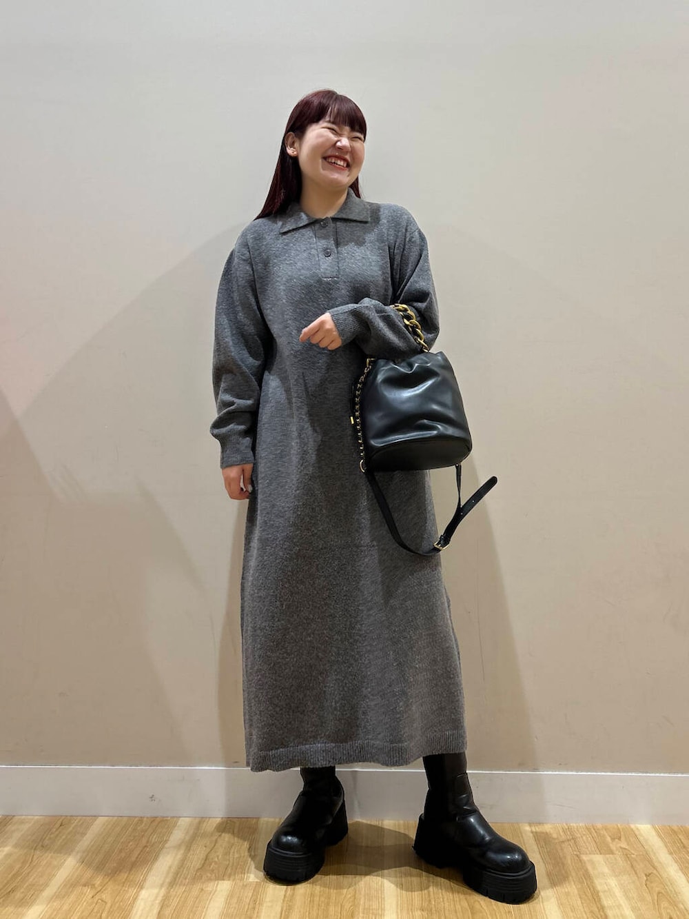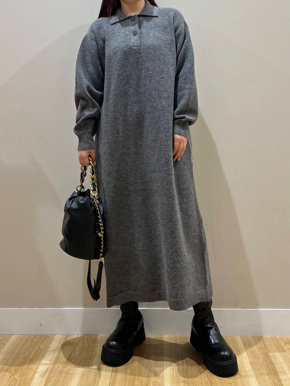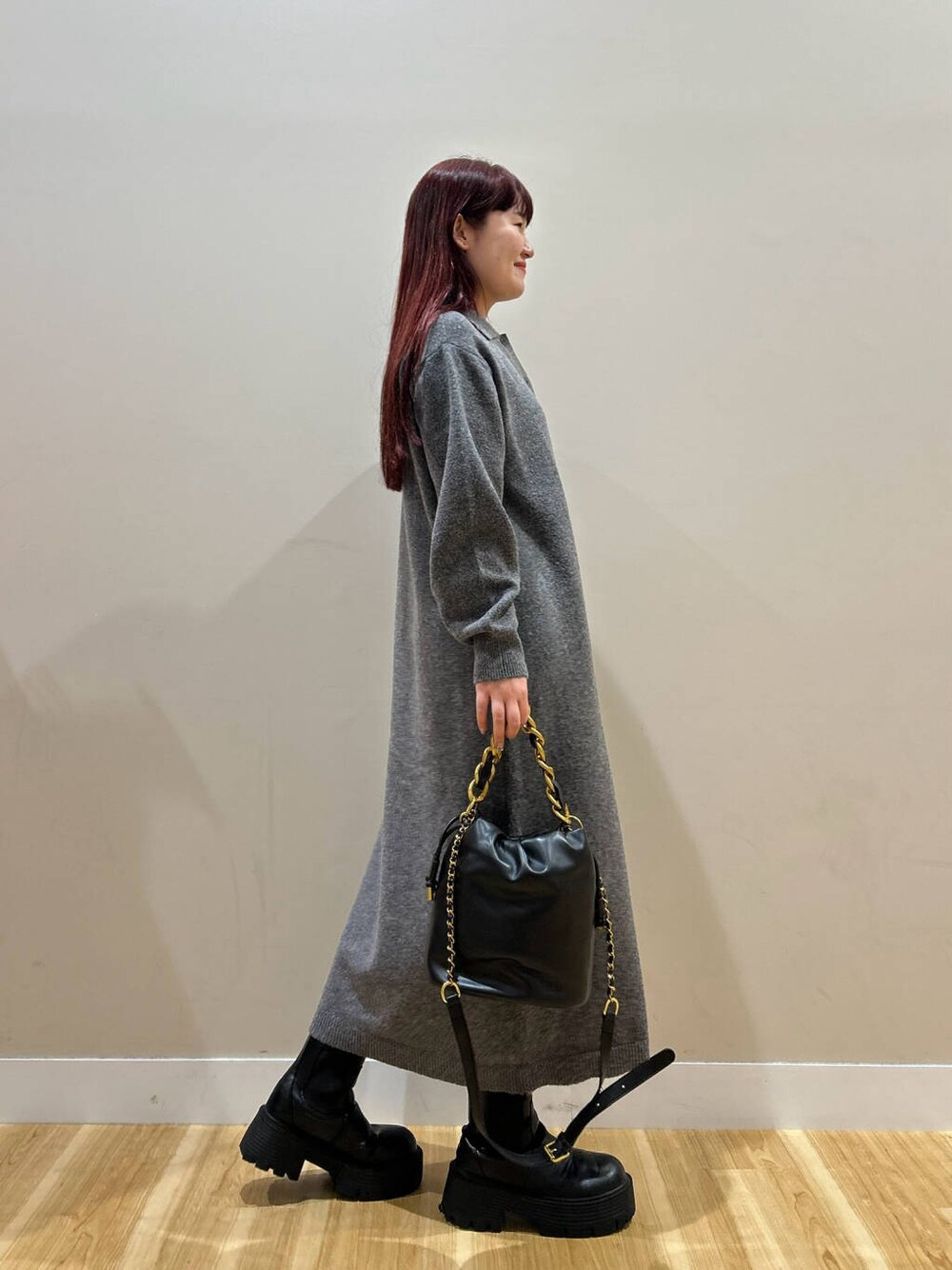 ニットワンピなのに軽くて伸びにくそうな生地感なのもありがたいです〜!!