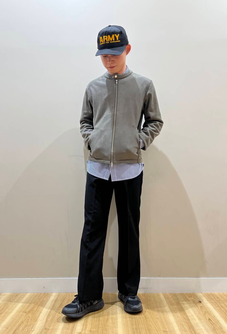 ライダースジャケットといえばダブルの方を想像される方が多いと思いますが、こちらはシングルでスエード風。