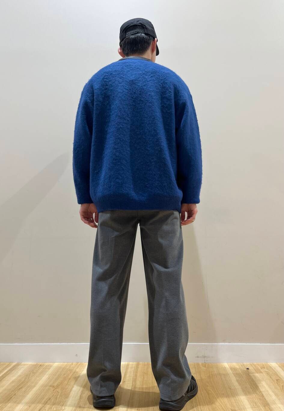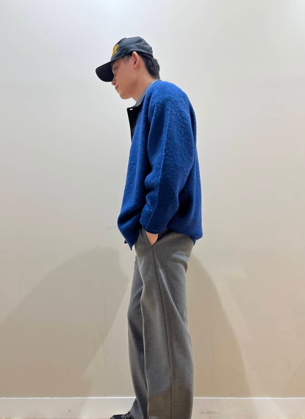 中に着てるジャケット、そこまで分厚くないフェイクレザーなので、インナーにし上からモヘアのカーディガンを羽織ってます。
