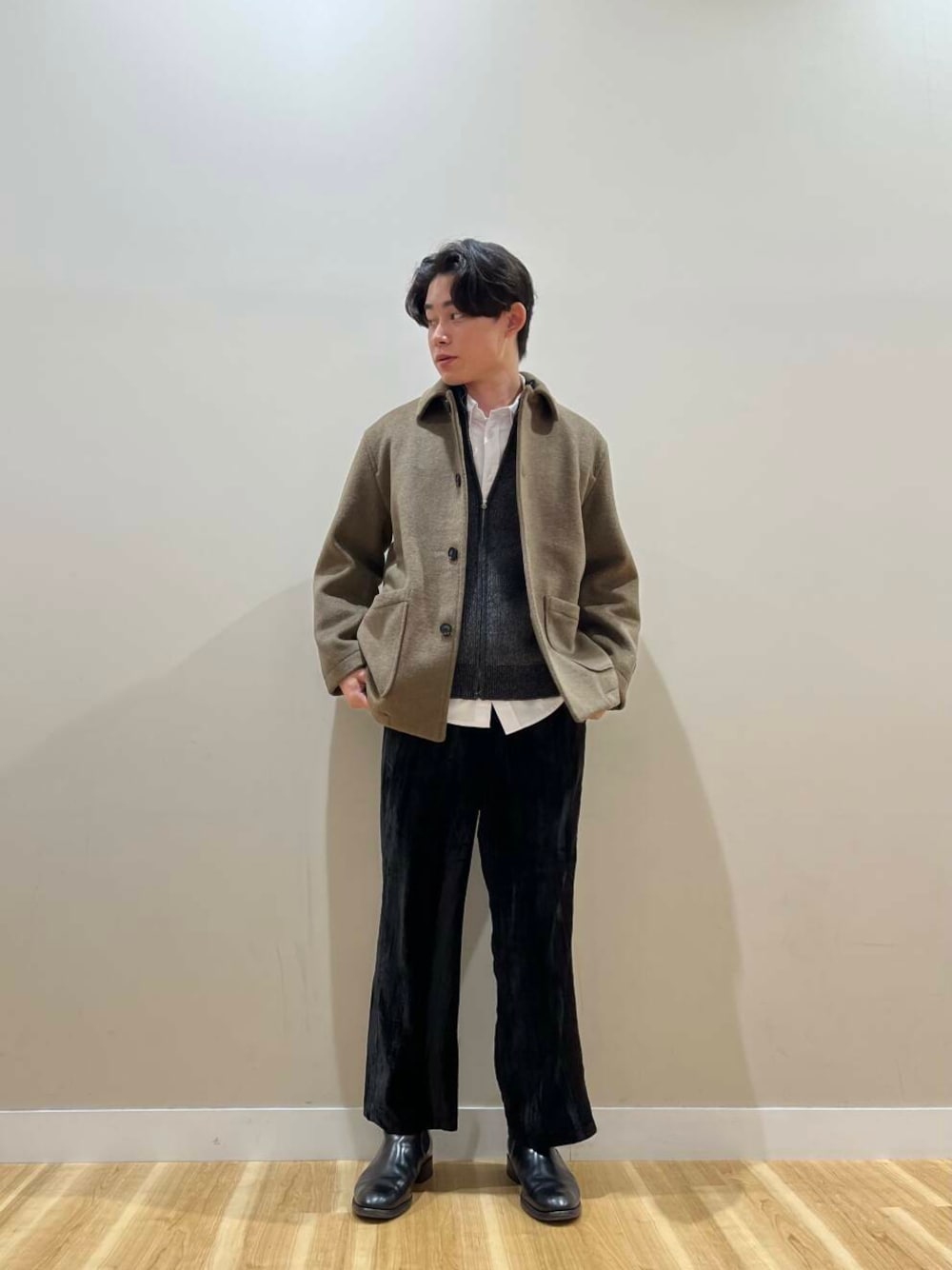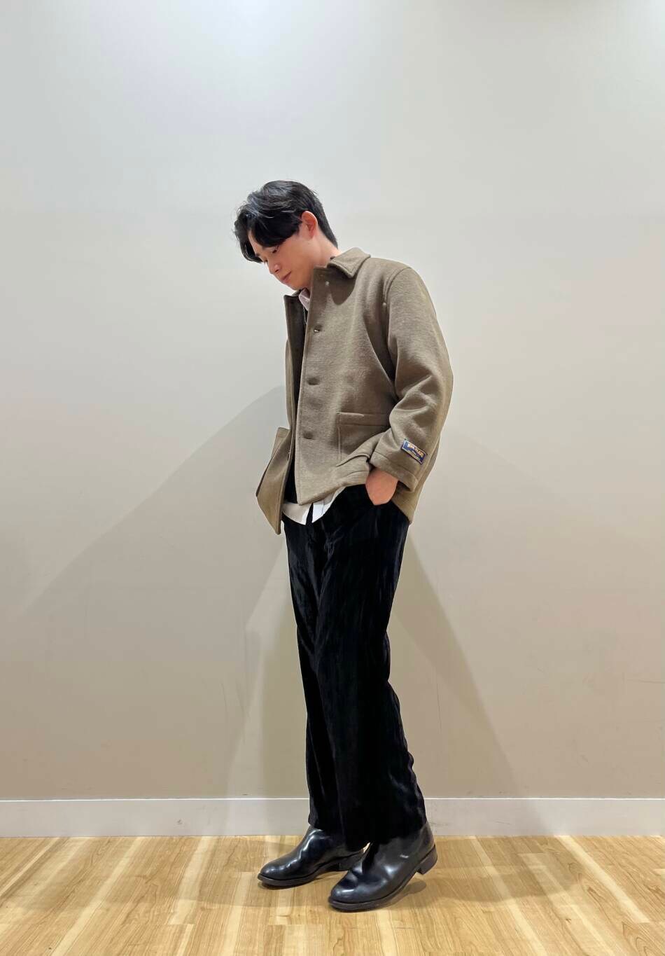 ミドル丈でフラップ無しポケット、ウール混、かなり使いやすいんじゃないですかね。