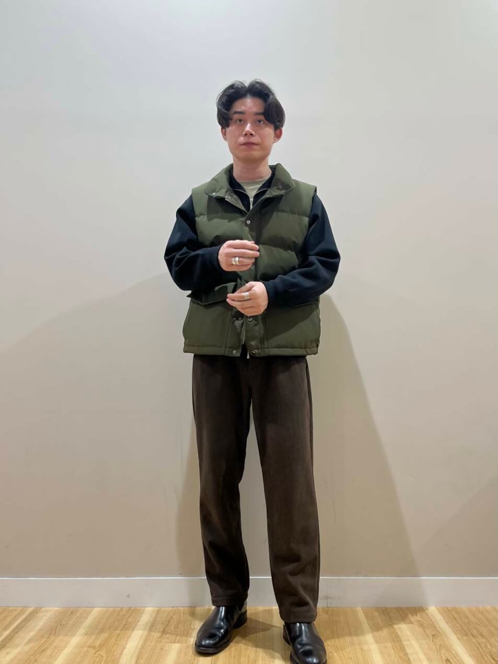 襟が作れるのはありがたい、カジュアル過ぎず大人っぽくコーデが作れます、インナーのニットといいレイヤードですね。