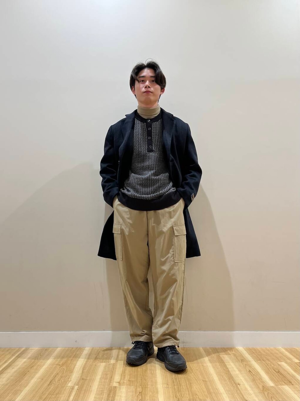 コート着てますが、ダウンジャケットとかの方が組みやすかったり、相性良かったりします。