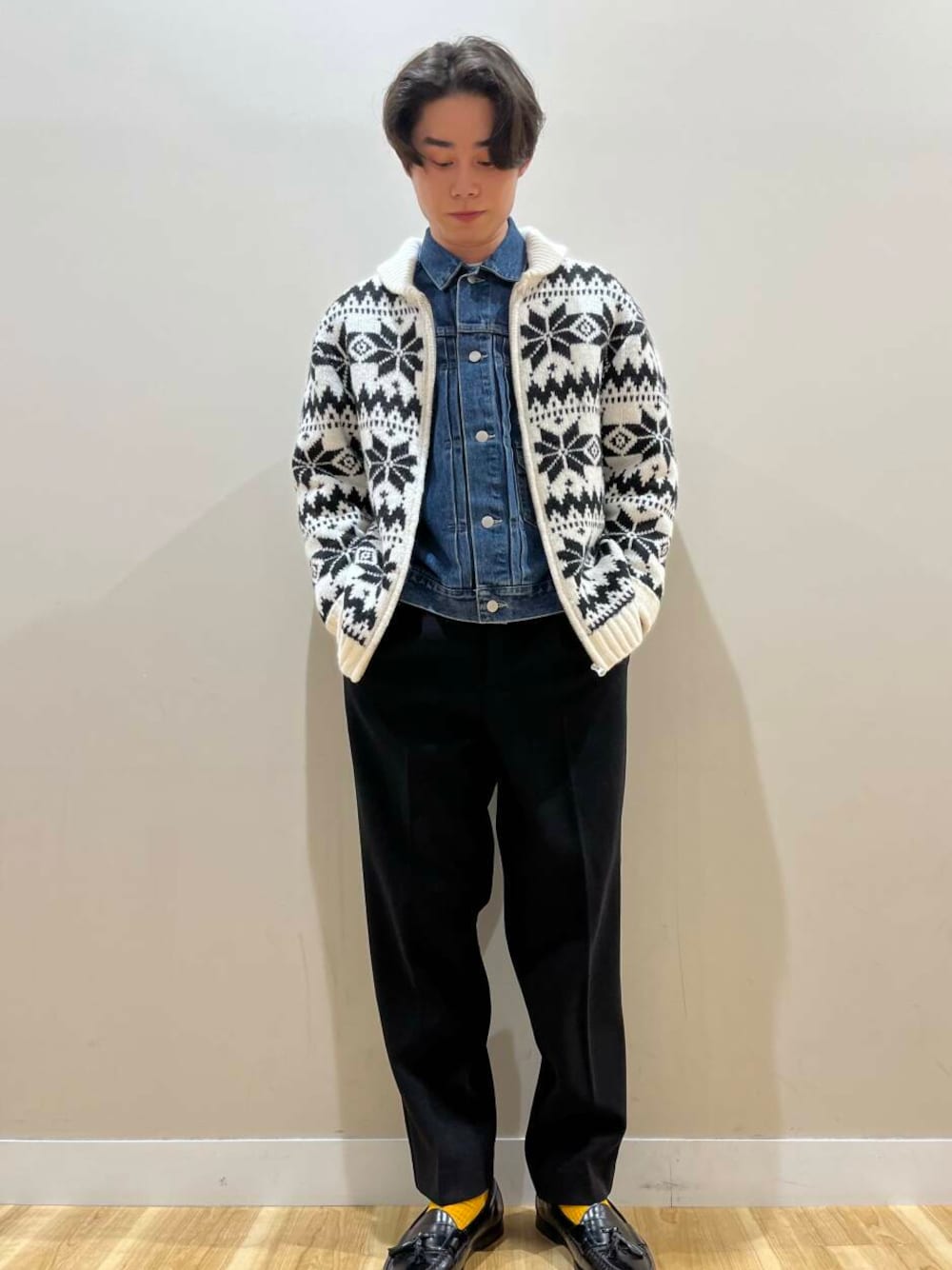 カウチンはいわゆるワークウェアでカジュアルな背景があるので、インナーにデニムジャケットを入れてます。