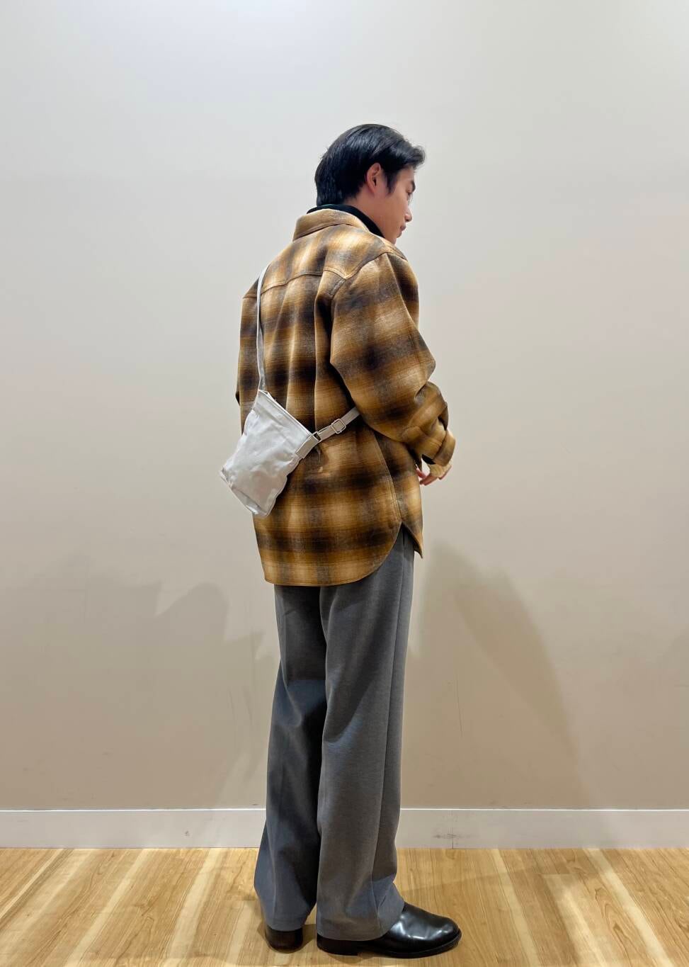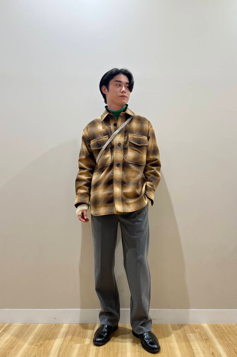 クルーザージャケットの様なアウトドアなアウターを着る時、当時の方のようにデニムなど履いてもいいですが、タウンユースだったりコンフォートで使うならスラックスでバランスを取った方がスタイリング組みやすいと思います。