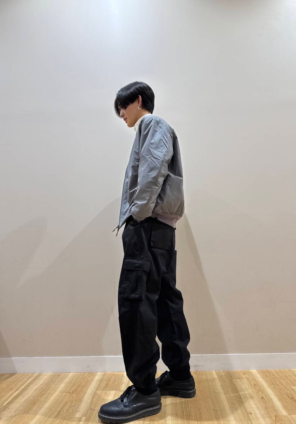 カーゴパンツはタックが入っているのでゆったりと履けて裾は紐つきなので、縛る場所、強さでゆったりさ丈の調節も可能です!