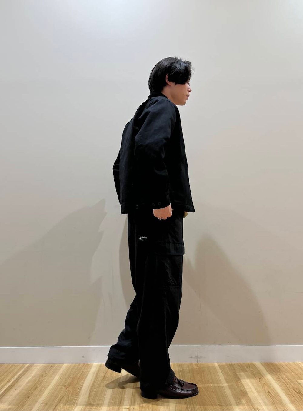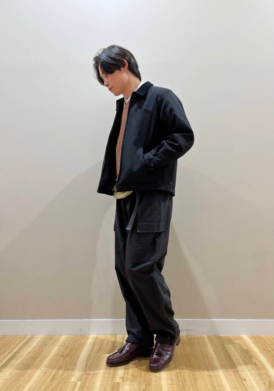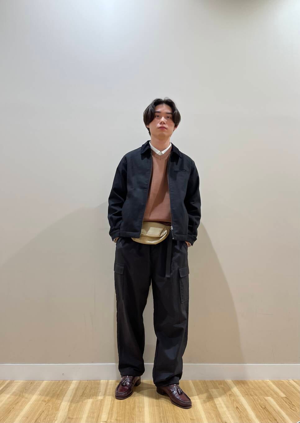 ワークジャケットにナイロンパンツとカジュアルな合わせの中に、シャツ×ニットベストとローファーを入れることで、クリーンなモードテイストになってくれると思います。