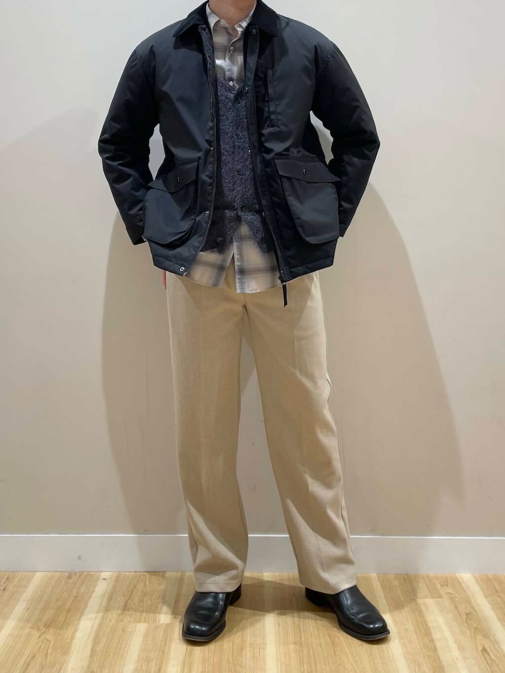 シャツにそのままアウターももちろんかっこいいですが、そこに違う生地のカーディガンを入れるだけでグッとコーデをしめてくれます。