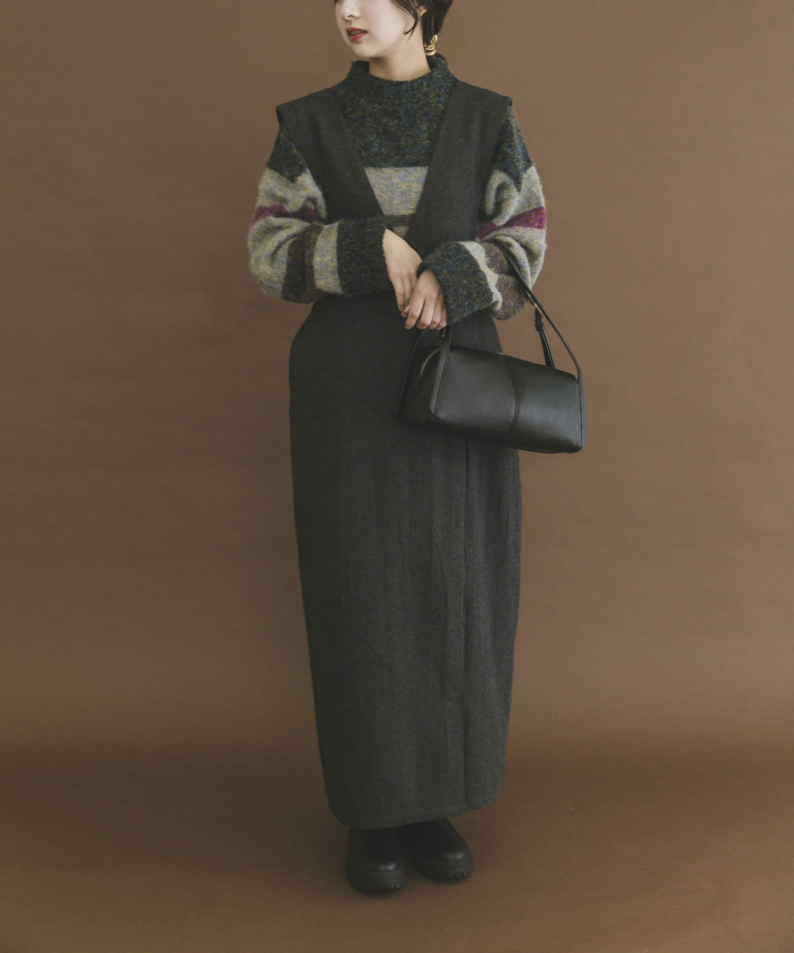 ゴマツイードジャンスカは丈長めなので高身長さんにもおすすめです!