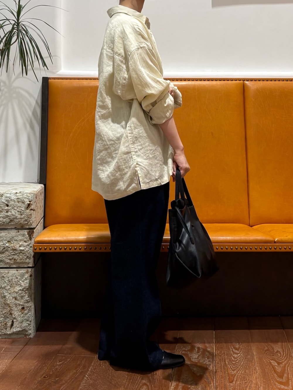 身幅はゆったりとしており、上半身のラインを拾いにくいのでスッキリとした印象に見えます◎シンプルにそのままではもちろん、ベストなどとの組み合わせもオススメです✨️