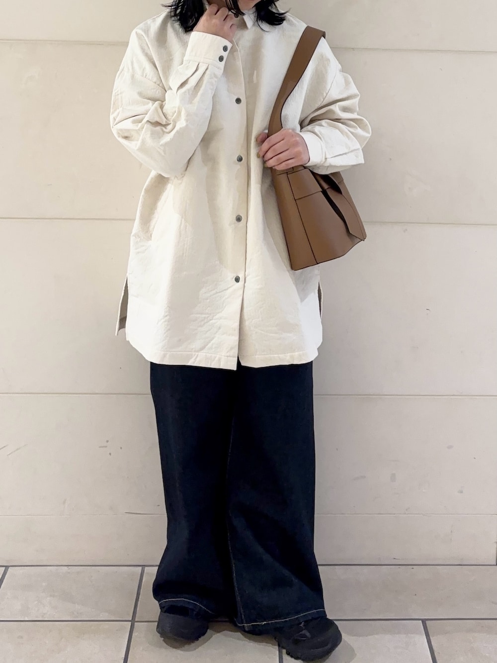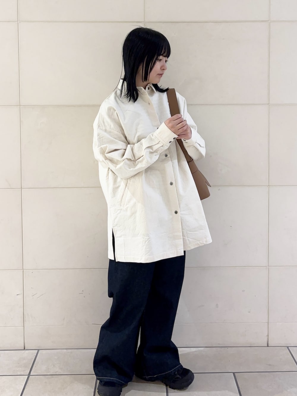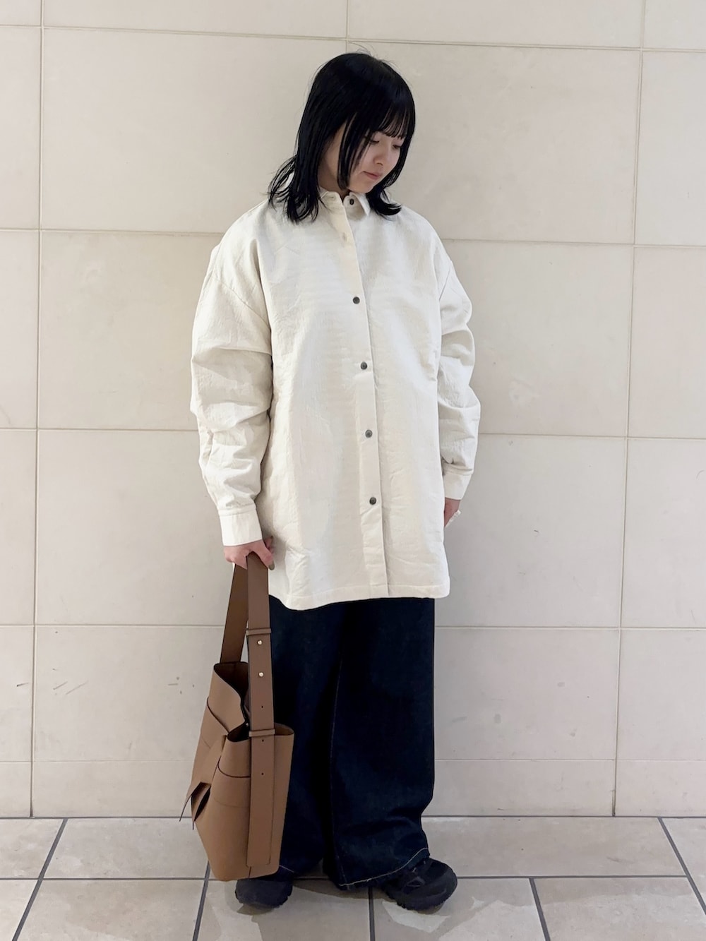 生地感がしっかりとしていて、ハリ感のある見た目になっています!少し肌寒い時期にはスウェットやニットの下にレイヤードしたり、春先には軽めの羽織として使っていただけます◎1枚あるとかなり着こなしていただけます♬